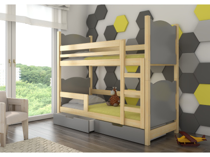 Design postele je moderní a univerzální, takže se hodí do každého interiéru. A co je ještě lepší, pro větší bezpečnost během spánku jsou na obou úrovních namontovány zábrany.