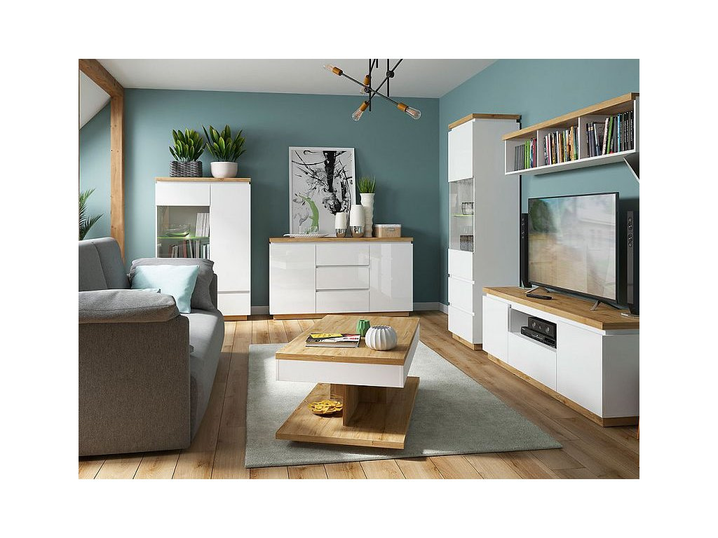 Určitě si zasloužíte mít obývací pokoj, který odráží vaši osobnost a zároveň vytváří dojem luxusu a elegance. S naším nábytkem z kolekce Erla toho dosáhnete snadno a s elegancí, která se vám bude líbit.Kombinace barev bílá/dub minerva/bílý lesk je zvolena s ohledem na moderní designové trendy a umožňuje vašemu obývacímu pokoji vyniknout.