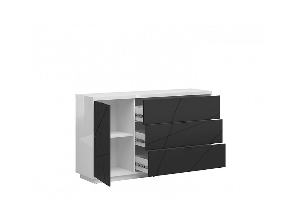 FORN komoda KOM1D3S, bílý lesk/černý mat