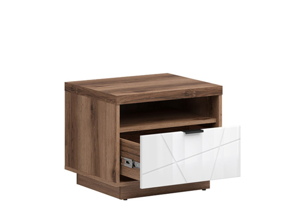 FORN noční stolek KOM1S, dub delano tmavý/bílý lesk