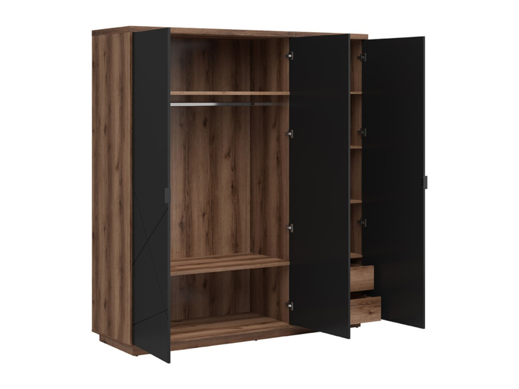 Tato šatní skříň je navržena s ohledem na maximální využití prostoru. Rozdělení na tři části vám umožní snadněji organizovat vaši garderóbu. Máte možnost využívat policový prostor pro uložení vašich bot a doplňků, zásuvkovou část pro uspořádání menších předmětů a šatní tyč pro vaše oblíbené oblečení. S touto skříní bude udržování pořádku snadné jako nikdy předtím.