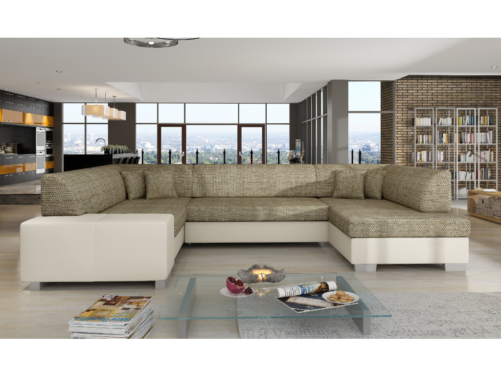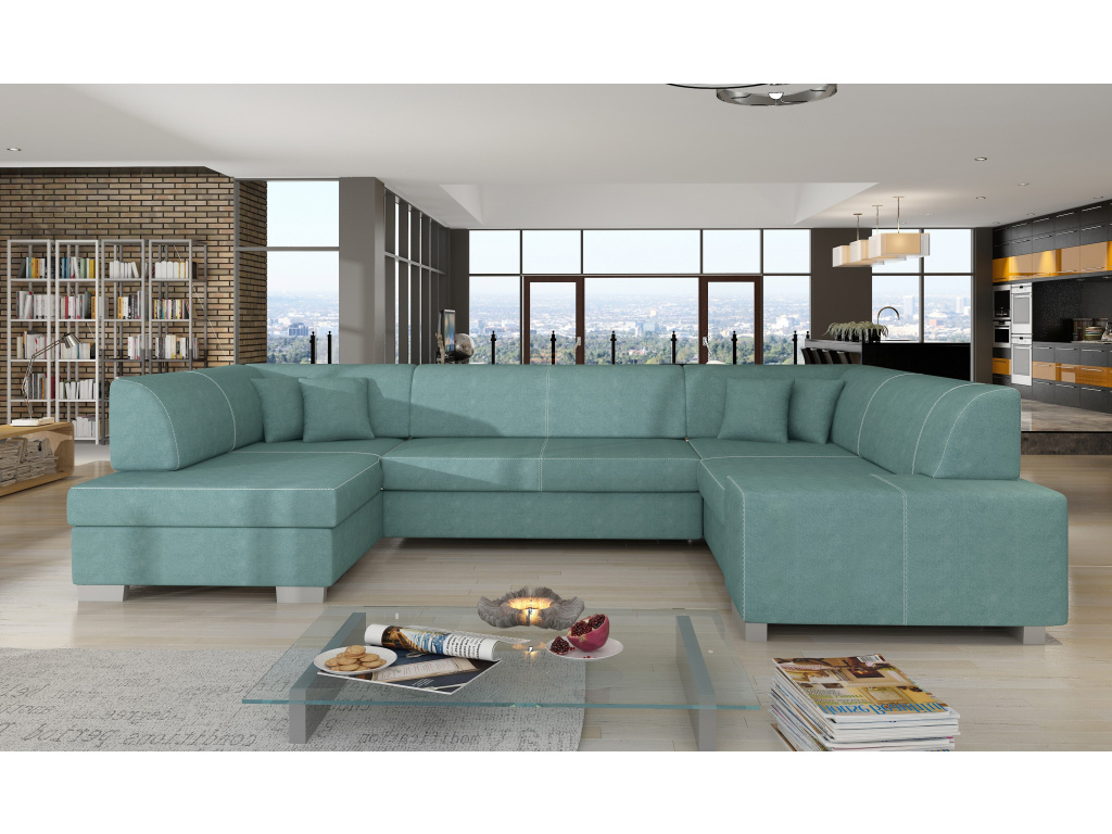 Havana je prostorná, luxusní čalouněná rohová sedací souprava velkých rozměrů 322 x 204 x 72 cm, takže poskytuje dostatek prostoru pro relaxaci. Tento kus nábytku ve tvaru písmene U má pohodlný a měkký sedák z odolné vlnité pružiny a také z pružné pěny T30, takže je celý odolný proti promáčknutí. Naše rohová sedací souprava je vybavena funkcí spaní a dostatečným úložným prostorem pro lůžkoviny. Intuitivní rozkládací systém delfín umožňuje snadnou přeměnu pohovky na lůžko o rozměrech 270x133 cm, čímž získáte opravdu velkou plochu pro noční odpočinek.