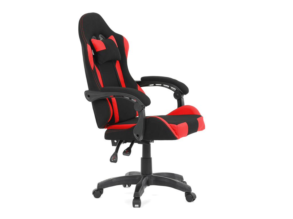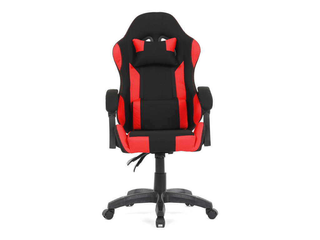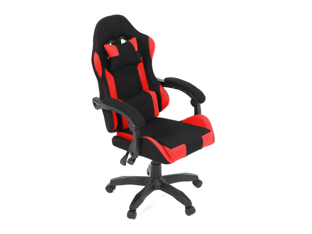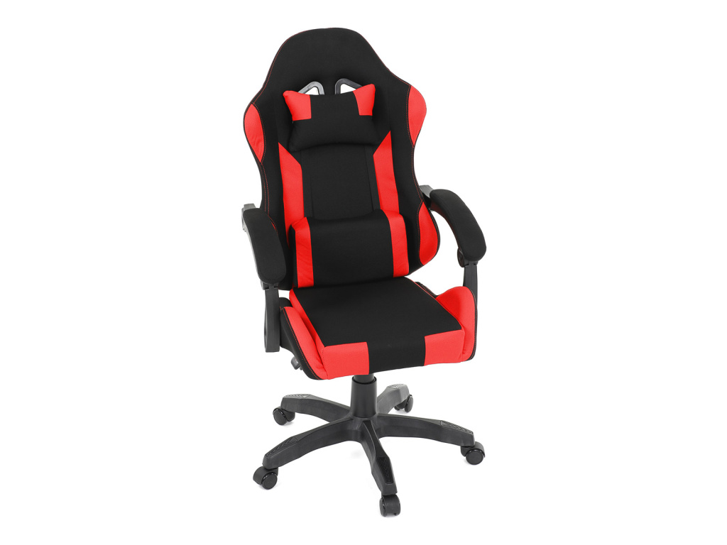 Herní křeslo, permanent contact mechanismus s polohovou aretací, potah černá a červená látka, černý plastový kříž o průměru 62 cm, kolečka na tvrdé povrchy, odnímatelné polštářky - bederní a podhlavník. Celková šířka herního křesla je 62 cm, hloubka 70 cm. Nastavitlená výška od 110 do 120 cm a výška sedu od 46 do 57 cm. Nosnost je až 130 kg.