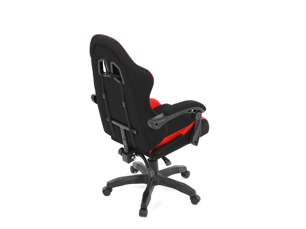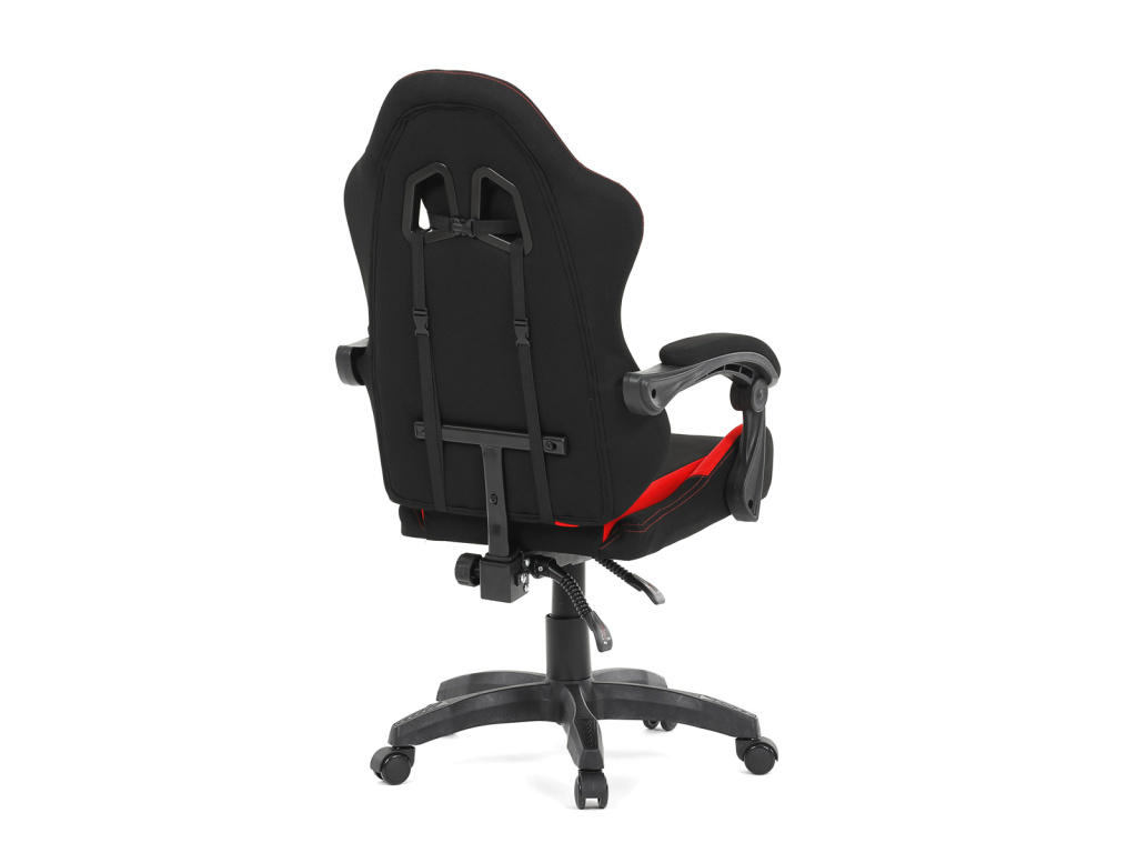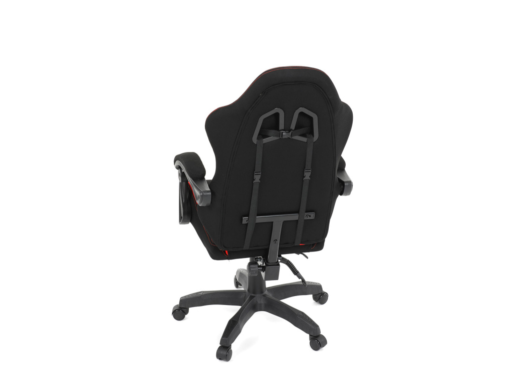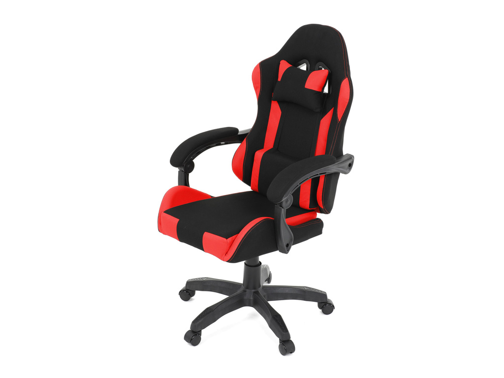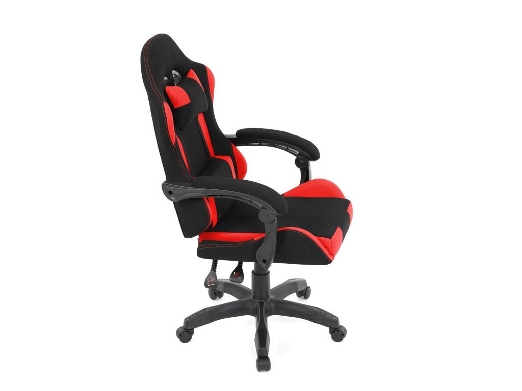 Herní křeslo, permanent contact mechanismus s polohovou aretací, potah černá a červená látka, černý plastový kříž o průměru 62 cm, kolečka na tvrdé povrchy, odnímatelné polštářky - bederní a podhlavník. Celková šířka herního křesla je 62 cm, hloubka 70 cm. Nastavitlená výška od 110 do 120 cm a výška sedu od 46 do 57 cm. Nosnost je až 130 kg.