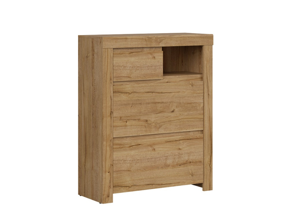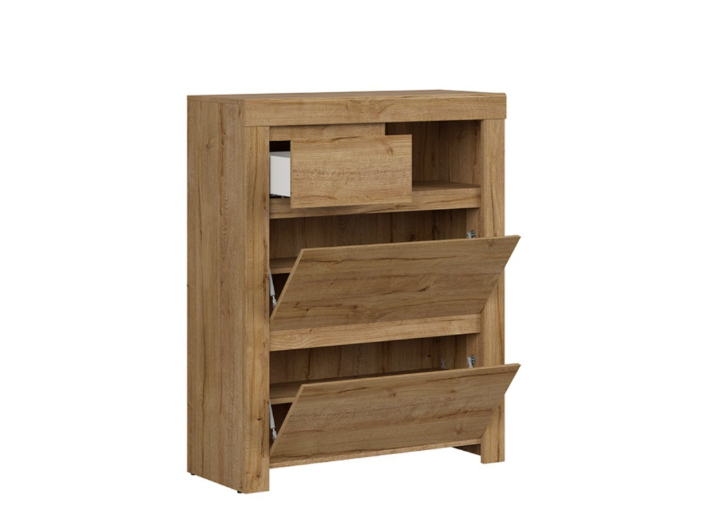 Dvířka jsou výklopná, za nimi se skrývá prostor rozdělený policí. Díky tomu budete mít větší přehled o ukládaných botách. V horní části je šuplík pro uložení krému na boty nebo jiných drobností.