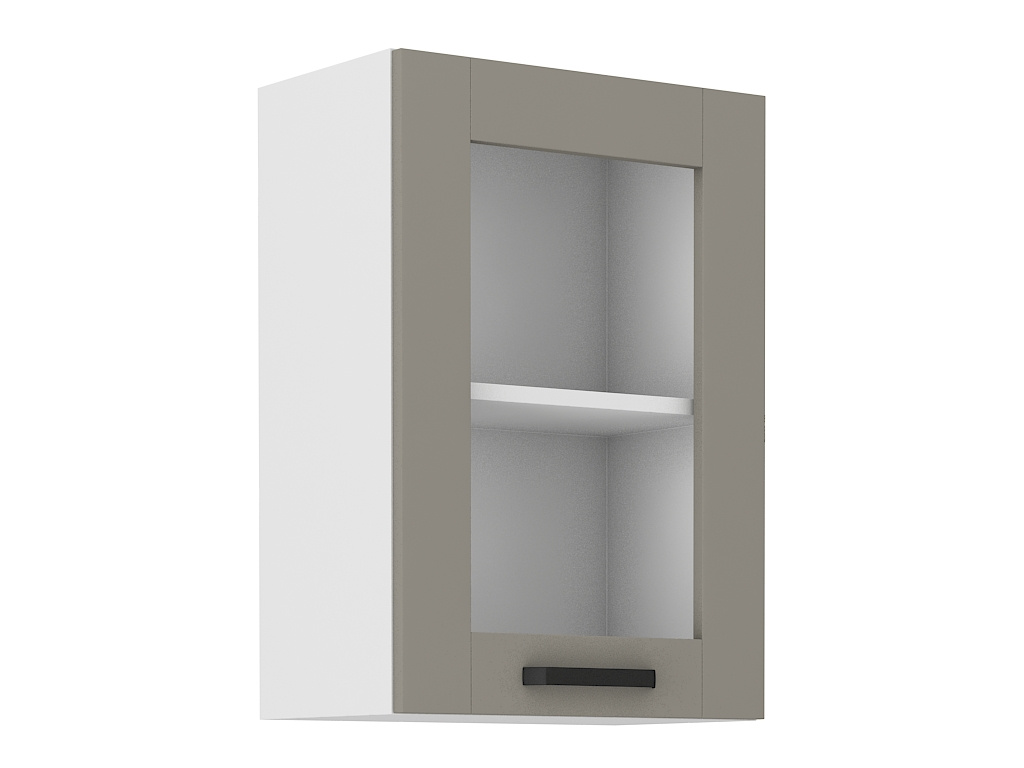 Horní kuchyňská skříňka Luna o šířce 40 cm a výšce 72 cm s prosklenými dvířky přináší lehkost a vzdušnost do každé kuchyně, zároveň však neztrácí na praktičnosti. Korpus je vyroben z kvalitní laminované desky o tloušťce 16 mm v barevném provedení dub artisan nebo bílá, zadní strana je z bílé HDF desky. Prosklená dvířka z 19mm MDF desky s elegantním rámem jsou dostupná v odstínech hliněně šedá, prachově šedá a bílá. Skříňka je osazena černou kovovou úchytkou (rozteč 160 mm) a vybavena systémem tichého dovírání, který zajišťuje pohodlné a tiché používání. Prosklené provedení je ideální pro vystavení dekorativního nádobí či sklenic a stylově odlehčuje horní řadu kuchyně Luna.