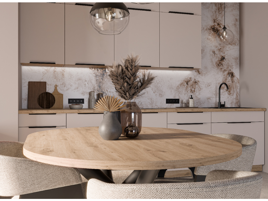Horní otevřená kuchyňská skříňka Solea je praktický a kompaktní prvek moderní kuchyně, vyrobený z 16mm laminované desky v dekoru dub artisan. Skříňka bez dvířek umožňuje snadný přístup k uloženým předmětům a přináší do prostoru svěží a přírodní vzhled. Stabilitu zajišťují černé nastavitelné nožky, které ladí s ostatními prvky kolekce Solea a podtrhují její moderní charakter. Tento otevřený modul je ideální pro uskladnění drobných kuchyňských doplňků či dekorací.