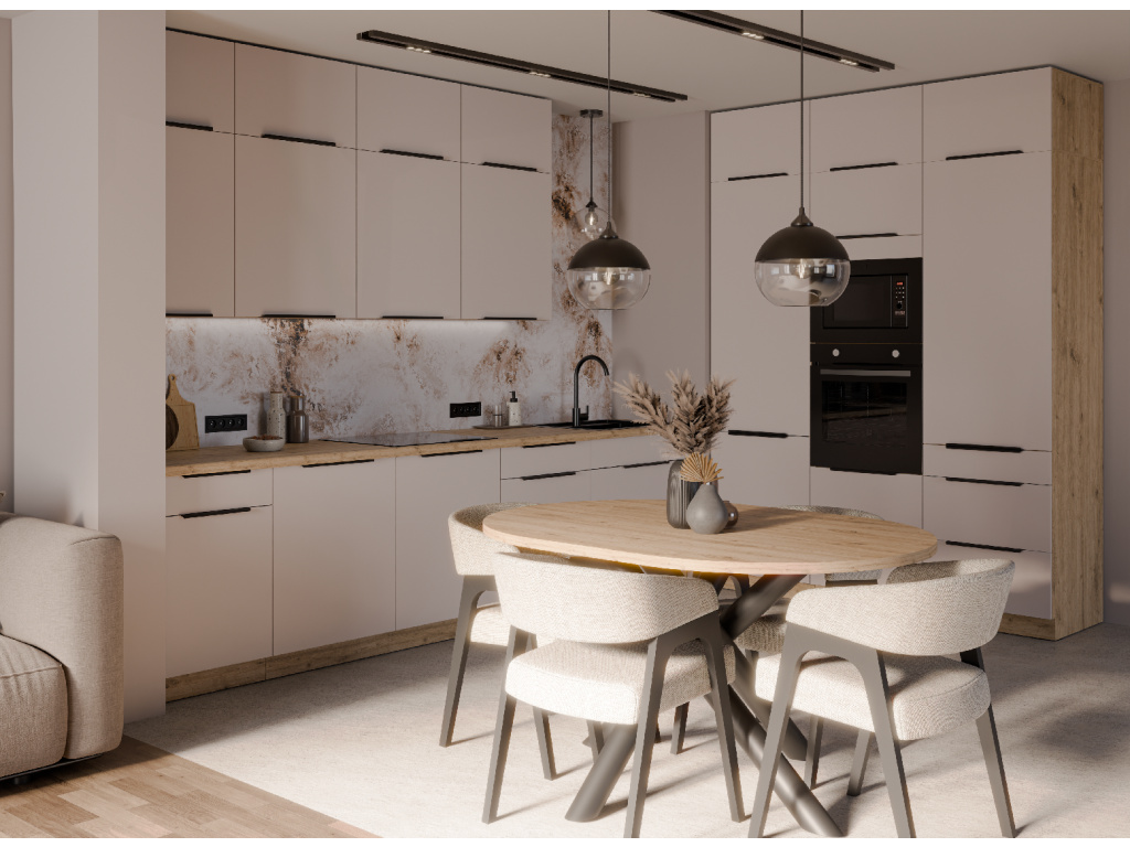 Horní kuchyňská skřínka Solea je vyšší úložný prvek, který nabízí dostatek místa i v užším provedení. Korpus z 16mm laminované desky v dekoru dub artisan zajišťuje odolnost, zadní strana z bílé HDF desky přispívá ke stabilitě. Dvířka v elegantním kašmírovém odstínu jsou vyrobena z 16mm laminované desky a opatřena ABS hranou pro vyšší ochranu proti poškození. Skříňka má jedny dvířka s tlumeným dovíráním pro pohodlné a tiché používání. Nadčasový vzhled dotváří černá hliníková úchytka UA-HEXA s variabilní roztečí 64–320 mm. Skvěle ladí s ostatními prvky kolekce Solea a nabízí praktické řešení i pro kompaktní kuchyňské sestavy.