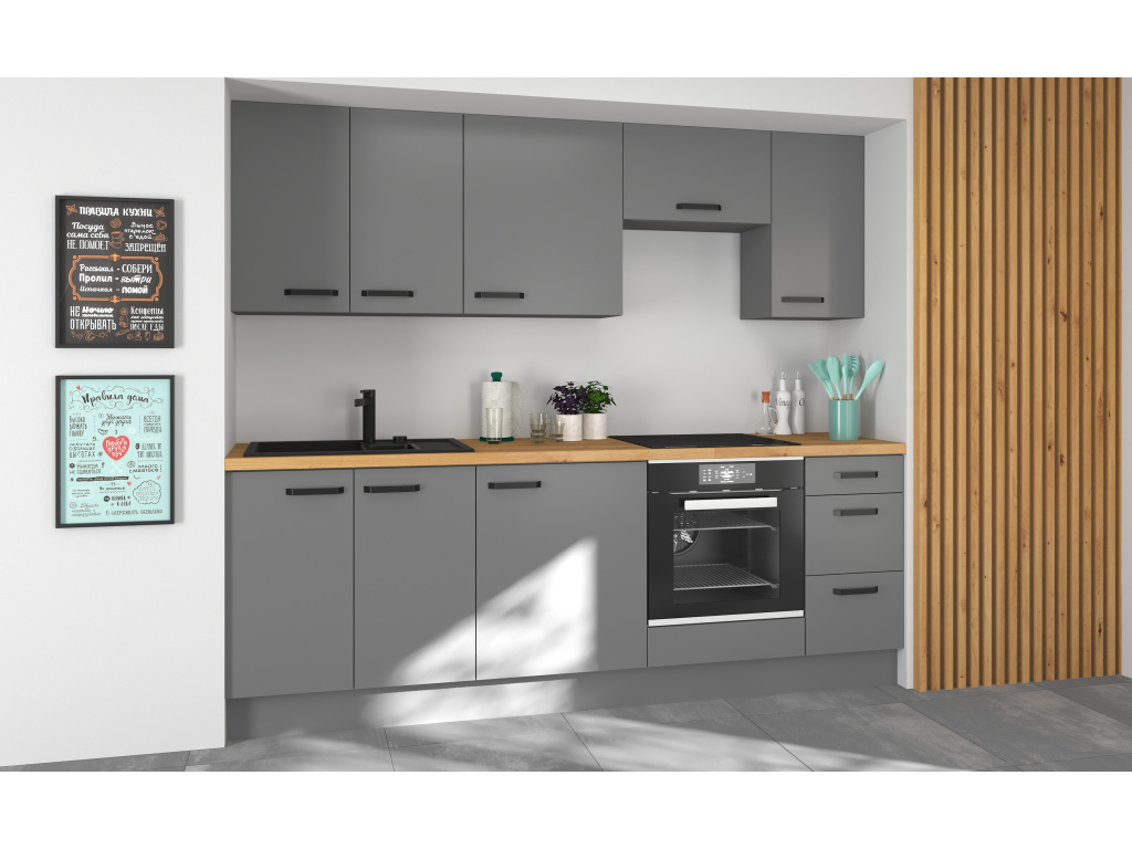 Horní rohová kuchyňská skříňka NESSA ANT 60x60 cm s výškou 107,5 cm a šikmým čelem v úhlu 45° je ideálním řešením pro maximální využití rohového prostoru ve vyšších kuchyňských sestavách. Vyrobena z kvalitní laminované desky o tloušťce 16 mm v moderním antracitovém dekoru, který je opatřen melaminem a zakončen odolnými ABS hranami. Skříňka je vybavena jedněmi dvířky s kovovou úchytkou o rozteči 160 mm a systémem tlumeného dovírání pro tichý a pohodlný provoz. Díky praktickému tvaru usnadňuje přístup k uloženým věcem a plynule navazuje na sousední horní skříňky. NESSA ANT je stylovou a funkční volbou pro moderní kuchyně s důrazem na detail i prostorovou efektivitu.
