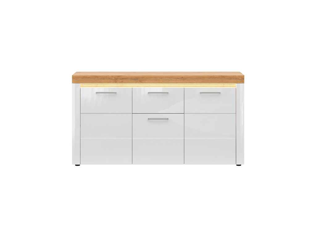 HORTON komoda KOM3D1S, bílý lesk/dub zlatý grandson