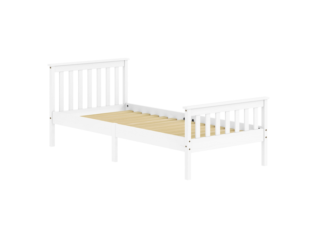 Jednolůžko TORINO 90×200 v elegantním bílém laku je ideální volbou pro ty, kteří hledají spojení jednoduchého stylu, kvalitního zpracování a praktického využití. Vyrobené z masivní borovice zaručuje pevnost, stabilitu a dlouhou životnost, zatímco bílé lakované provedení dodává posteli čistý a svěží vzhled, který se skvěle hodí do moderních i klasických interiérů. Součástí postele je pevný dřevěný laťkový rošt, díky kterému stačí pouze doplnit matraci o rozměru 90 × 200 cm a postel je připravena k použití. TORINO je perfektní volbou pro dětské nebo studentské pokoje, hostinské ložnice i menší prostory, kde oceníte kombinaci nadčasového designu a poctivého přírodního materiálu.