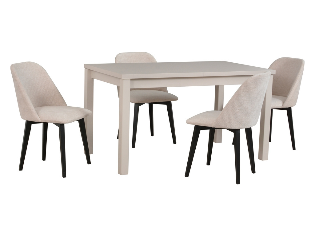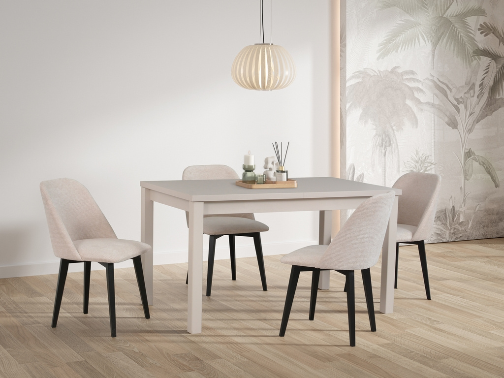 Jídelní sestava Bordoux je elegantní a funkční volbou pro moderní interiéry, kde vynikne kombinace tmavých tónů a jemného dekoru kašmír. Součástí sestavy jsou stylové židle MONTI 3 v černé barvě s čalouněním 34A – Aragon 03, které zajišťuje vysoký komfort sezení a odolnost při každodenním používání. Rozkládací jídelní stůl MODENA 1 o rozměrech 80 × 140 cm s možností rozložení až na 180 cm nabízí dostatek prostoru pro rodinné stolování i posezení s přáteli, přičemž laminátová deska v barvě kašmír je nenáročná na údržbu a působí moderním, čistým dojmem. Celá jídelní sestava Bordoux spojuje nadčasový design, praktičnost a pohodlí, díky čemuž je ideálním řešením pro stylovou jídelnu.