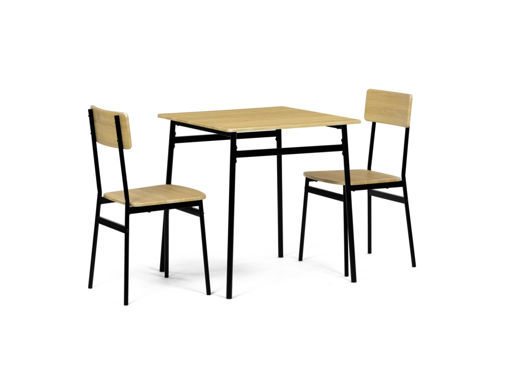 Tento jídelní set značky Autronic je ideální volbou pro menší prostory. Set obsahuje čtvercový stůl a dvě židle, které se svým industriálním designem dokonale hodí do moderních interiérů. Deska stolu i sedáky jsou vyrobeny z odolného MDF s dekorem divokého dubu. Černé kovové nohy dodávají sestavě stabilitu a moderní kontrast. Tento set je ideální pro dvě osoby a je vhodný zejména do menších jídelen nebo kuchyní. Montáž je snadná a rychlá, ideální řešení pro moderní bydlení.Doplňkové parametry