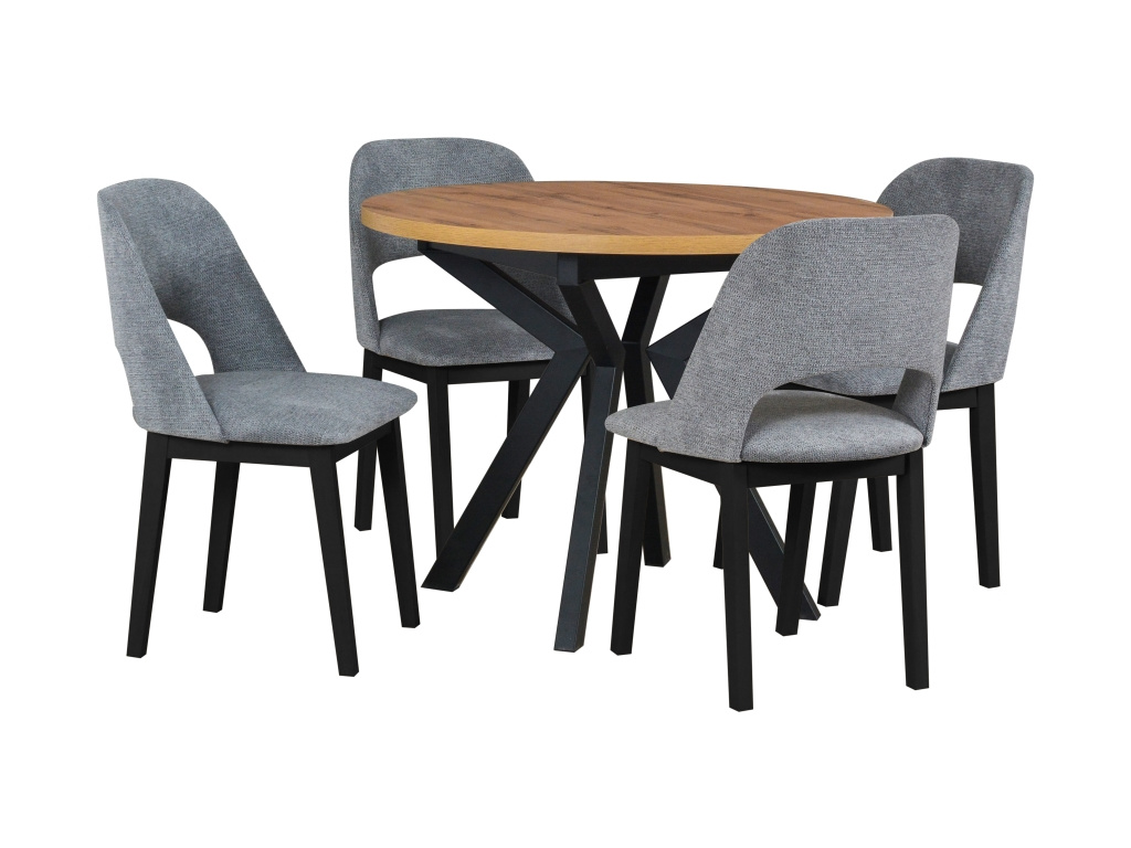 Jídelní set IRON 4+1 se židlemi MONTI 2 je výrazným designovým prvkem, který dodá vaší jídelně moderní industriální charakter. Čtvercový stůl IKON 7 o rozměru 100 × 100 cm s laminátovou deskou v dekoru Artisan zaujme přirozeným vzhledem dřeva a vysokou odolností při každodenním používání, zatímco pevné černé kovové nohy zajišťují maximální stabilitu a podtrhují industriální styl. Čtyři pohodlné židle MONTI 2 jsou čalouněny kvalitní látkou Aragon 93, která je příjemná na dotek, odolná a ideální pro každodenní sezení. Elegantní kombinace černé barvy, kovu a dekoru dřeva dělá z jídelního setu IRON 4+1 stylové a praktické řešení pro moderní domácnosti, které ocení design, komfort i dlouhou životnost.