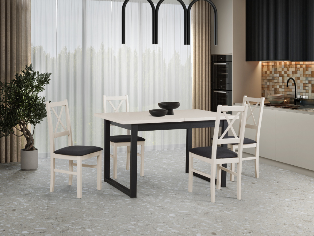 Jídelní set ZOE 4+1 je moderním a elegantním řešením pro stylové jídelny, kde vynikne jemný odstín kašmír v kontrastu s černými kovovými nohami. Součástí setu jsou 4 pohodlné židle NILO 10 v barvě kašmír s čalouněním Opium 99, které nabízí vysoký komfort sezení a odolnost při každodenním používání. Rozkládací jídelní stůl IKON 3 o rozměrech 80 × 140 cm s možností rozložení až na 180 cm poskytuje dostatek prostoru pro rodinné stolování i návštěvy, přičemž laminátová deska v barvě kašmír je nenáročná na údržbu a podtrhuje čistý, moderní vzhled celého setu. Jídelní set ZOE 4+1 spojuje nadčasový design, praktičnost a pohodlí a je ideální volbou pro každodenní i slavnostní stolování.