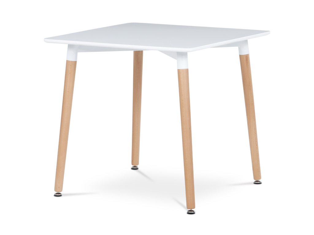 Jídelní stůl 80x80x74 cm, MDF / kovová kostrukce - bílý matný lak, dřevěné nohy - DT-303 WT