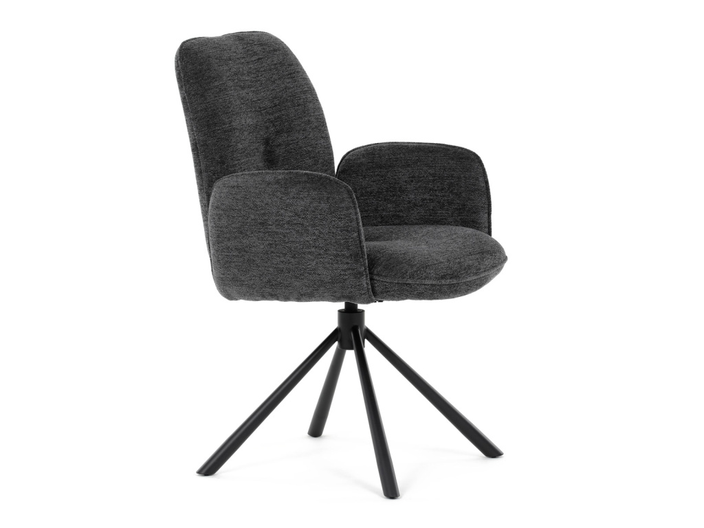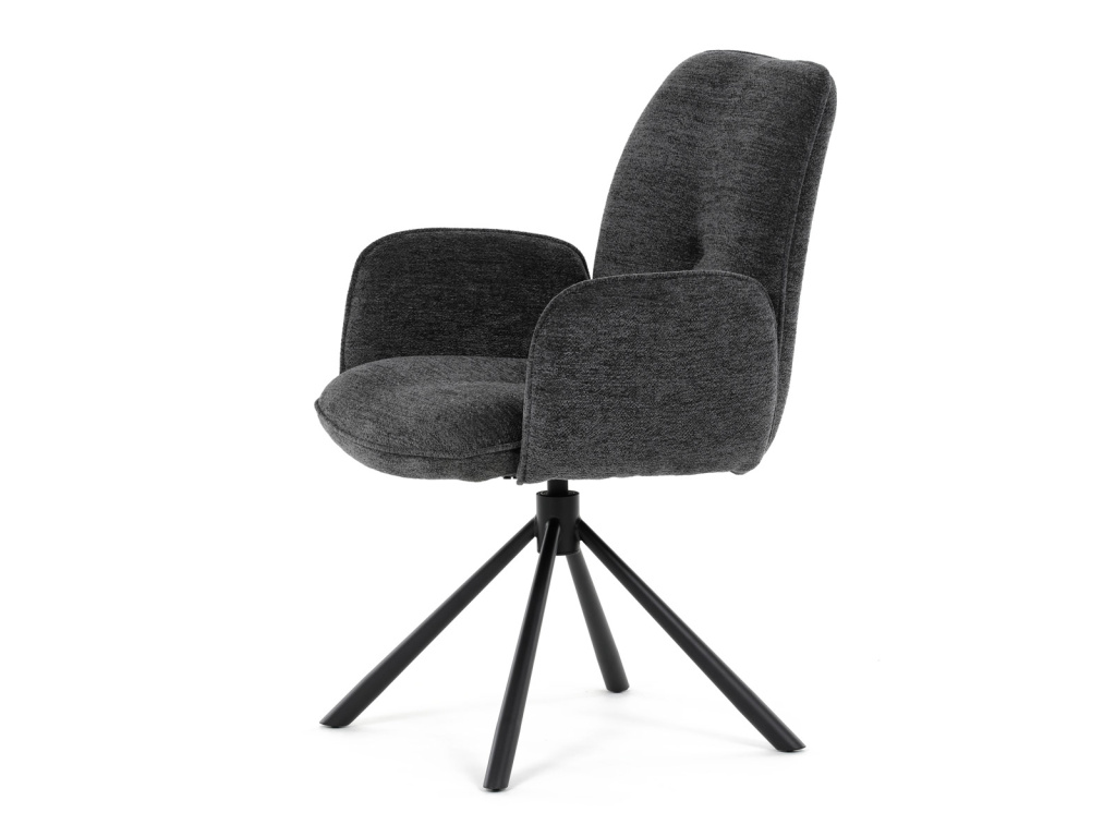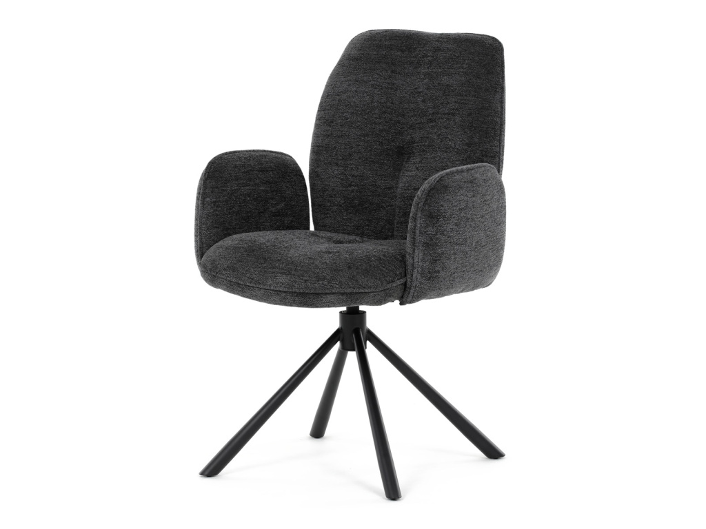 Elegantní jídelní židle značky Autronic v industriálním stylu přináší maximální pohodlí a moderní design. Čalounění z hladké látky v antracitovém odstínu je nejen stylové, ale i příjemné na dotek. Stabilní kovová podnož v černé barvě dodává židli pevnost a odolnost. Díky otočnému 360° mechanismu nabízí vysokou flexibilitu a komfort při sezení. Pohodlné područky a ergonomicky tvarovaný sedák z PU pěny zajišťují optimální oporu těla. Perfektní volba pro stylové a funkční jídelní prostory.Doplňkové parametry