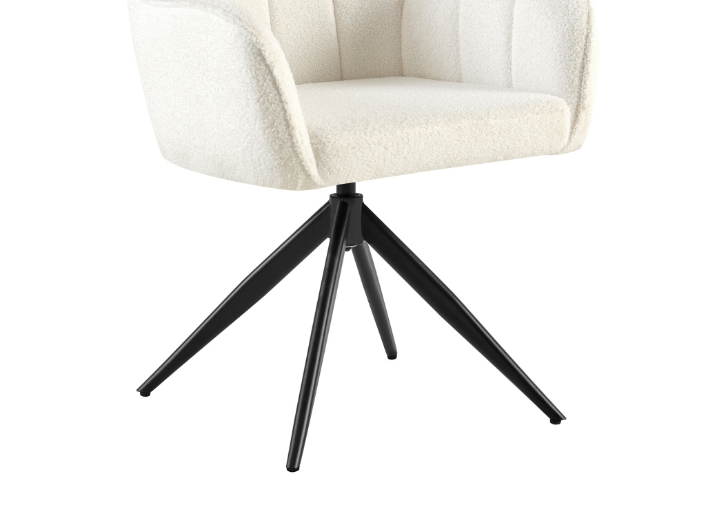 Jídelní židle CALYPSO krémová zaujme svým moderním vzhledem a praktickými vlastnostmi. Textilní potah v krémovém barevném provedení působí elegantně a zároveň je příjemný na dotek. Kovová konstrukce v černém barevném provedení dodává židli stabilitu a odolnost. Funkce otočení o 360 stupňů zajišťuje maximální pohodlí a flexibilitu při používání. Tato stylová židle je skvělou volbou do každé jídelny, kuchyně nebo moderního interiéru.