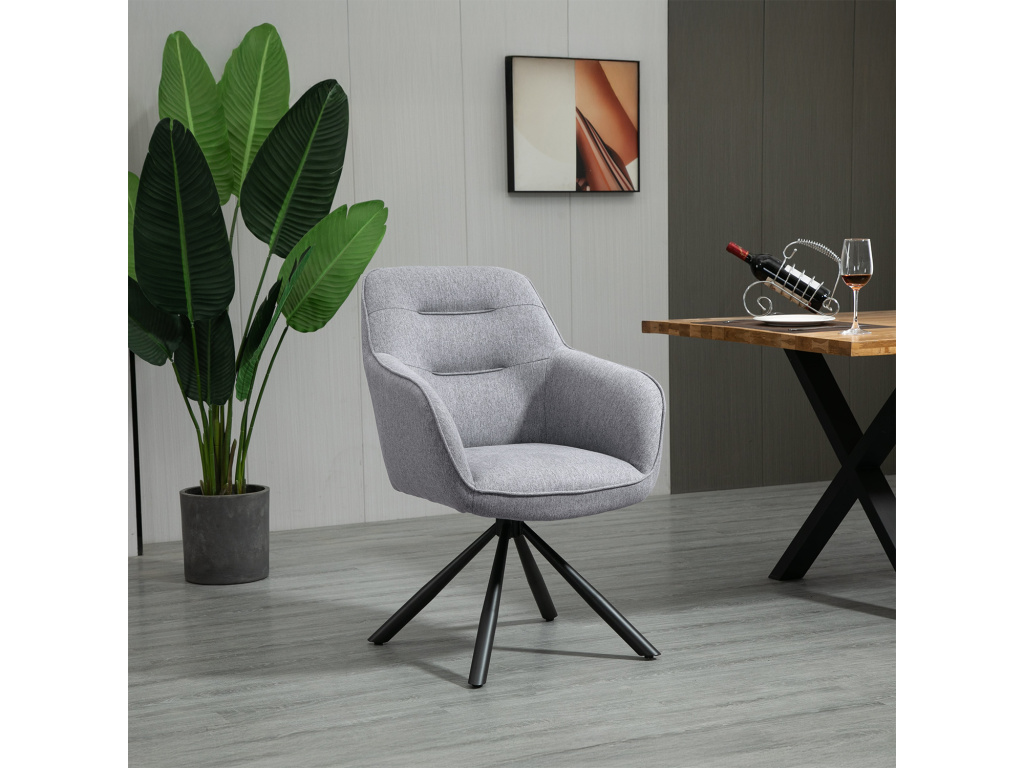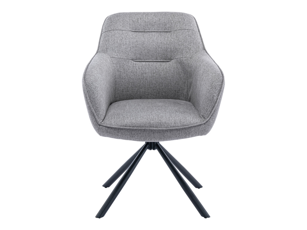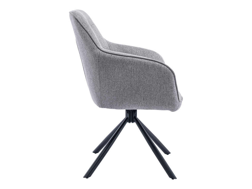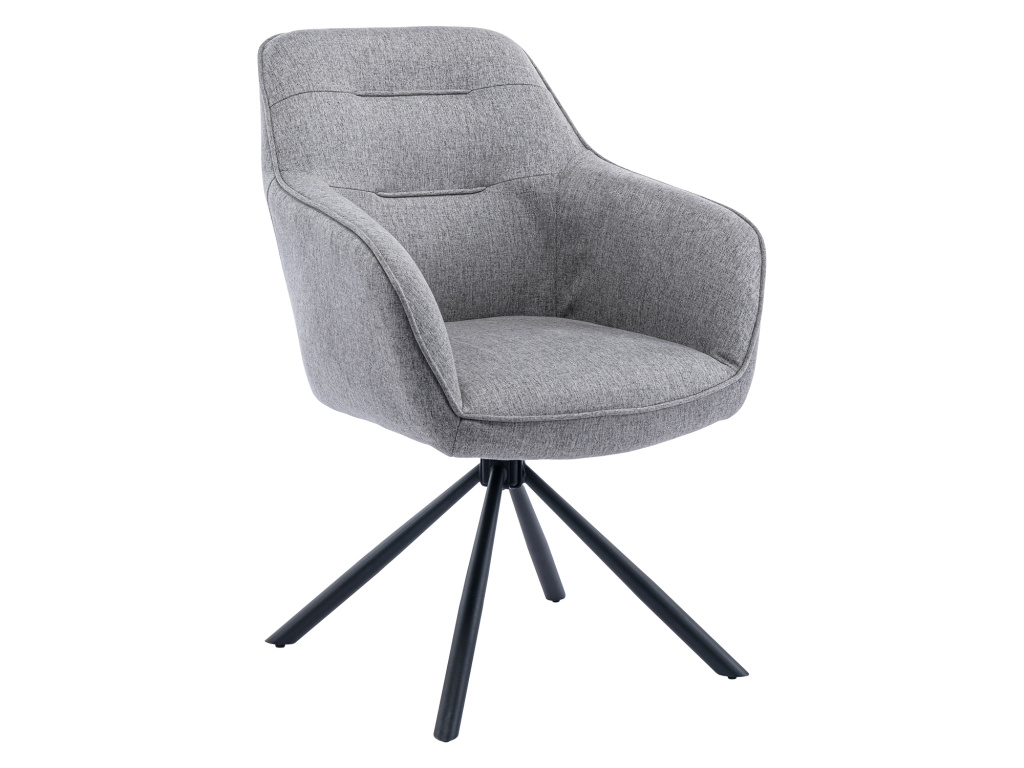 Elegantní jídelní židle KANADER v šedém textilním potahu je ideální volbou pro každou moderní kuchyň či jídelnu. Díky otočné konstrukci o 180 stupňů zajišťuje maximální pohodlí a flexibilitu při sezení. Kovová konstrukce v černém provedení dodává židli stabilitu a sofistikovaný vzhled, který snadno zapadne do jakéhokoliv interiéru. S výškou sedu 48 cm a doporučenou nosností až 120 kg poskytuje židle spolehlivé a pohodlné sezení pro každodenní použití. Oživte svůj domov stylovou a praktickou jídelní židlí KANADER, která skvěle kombinuje elegantní design a vysokou funkčnost.