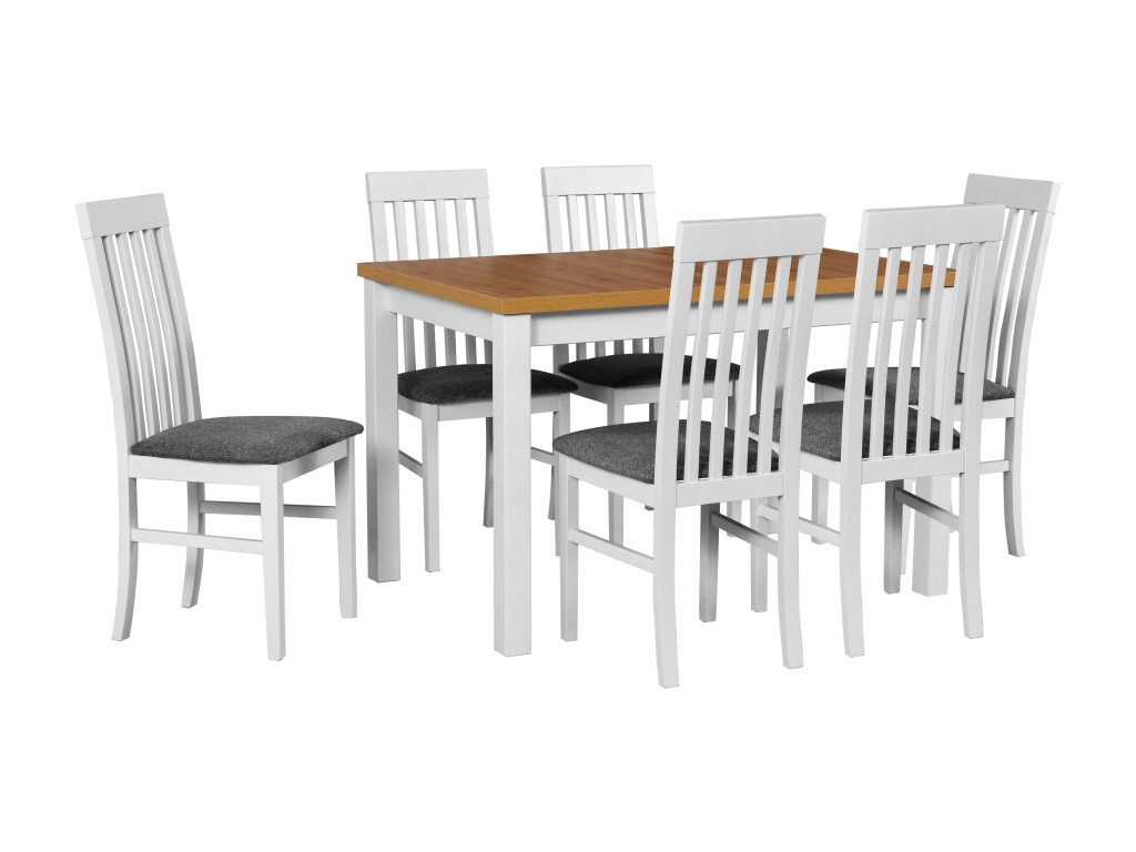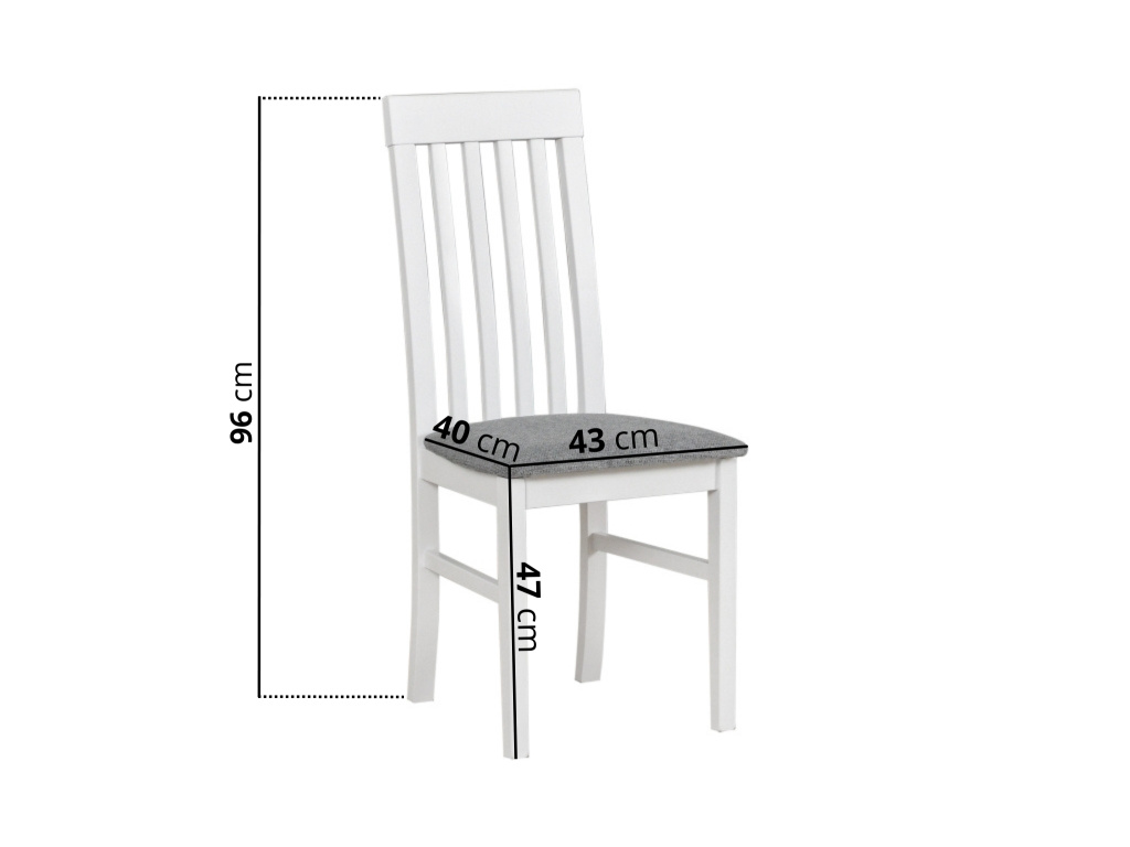 Jídelní židle Nilo 1 je stylovým a praktickým doplňkem každé jídelny, který spojuje nadčasový design s pohodlím při každodenním používání. Pevná dřevěná konstrukce zajišťuje stabilitu a dlouhou životnost, zatímco čalouněný sedák poskytuje příjemný komfort při sezení. Díky jednoduchým a elegantním liniím se židle snadno začlení do moderního i klasického interiéru. Rozměry židle jsou 95 × 40 × 43 cm a výška sedáku 47 cm, což zaručuje ergonomické a pohodlné sezení. Velkou výhodou je možnost kombinace barev dřeva a potahové látky z nabídky, díky čemuž si židli Nilo 1 snadno přizpůsobíte svému vkusu a stylu interiéru.