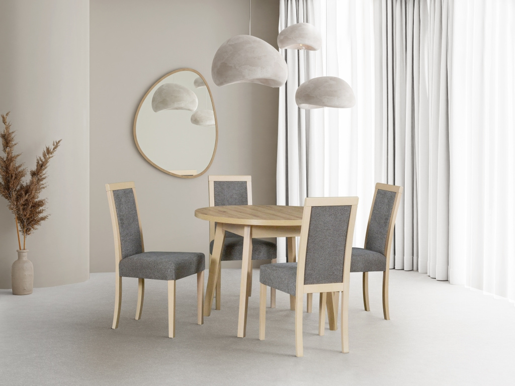 Jídelní židle Roma 3 je mistrovským spojením tradičního řemesla a moderního designu, které dodá eleganci každému interiéru – je vyrobena z masivního bukového dřeva s pevnou a stabilní konstrukcí, přičemž přirozená kresba dřeva zajišťuje jedinečný vzhled každého kusu, díky rozměrům 45 × 41 × 93 cm a výšce sedu 47 cm nabízí komfortní sezení, čalouněný sedák a opěrák z kombinace HDF desky, pěny T-25 a kvalitní potahové látky poskytují vysoké pohodlí i při dlouhém stolování, široký výběr látek umožňuje přizpůsobení podle vlastního stylu, židle je dodávána již smontovaná, balená po dvou kusech, a díky své kvalitě, odolnosti a nadčasovému vzhledu je ideální volbou do jídelny i obývacího prostoru.