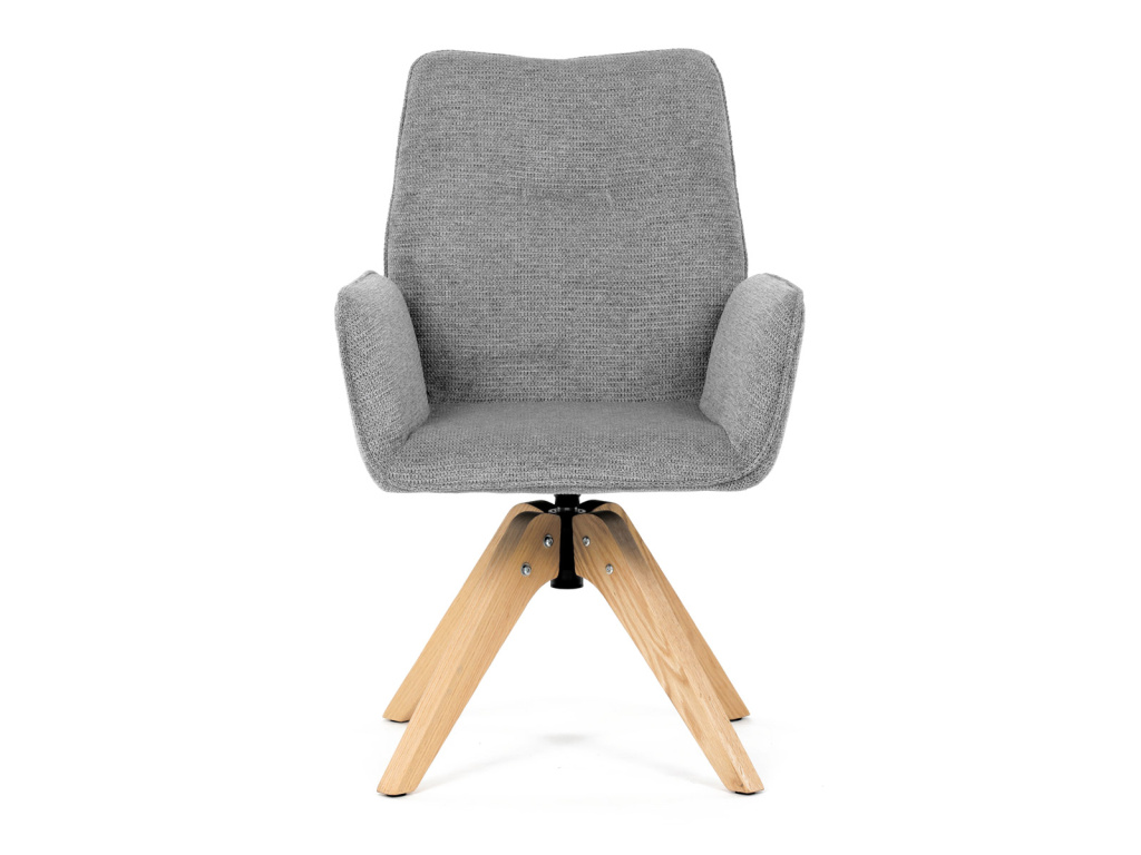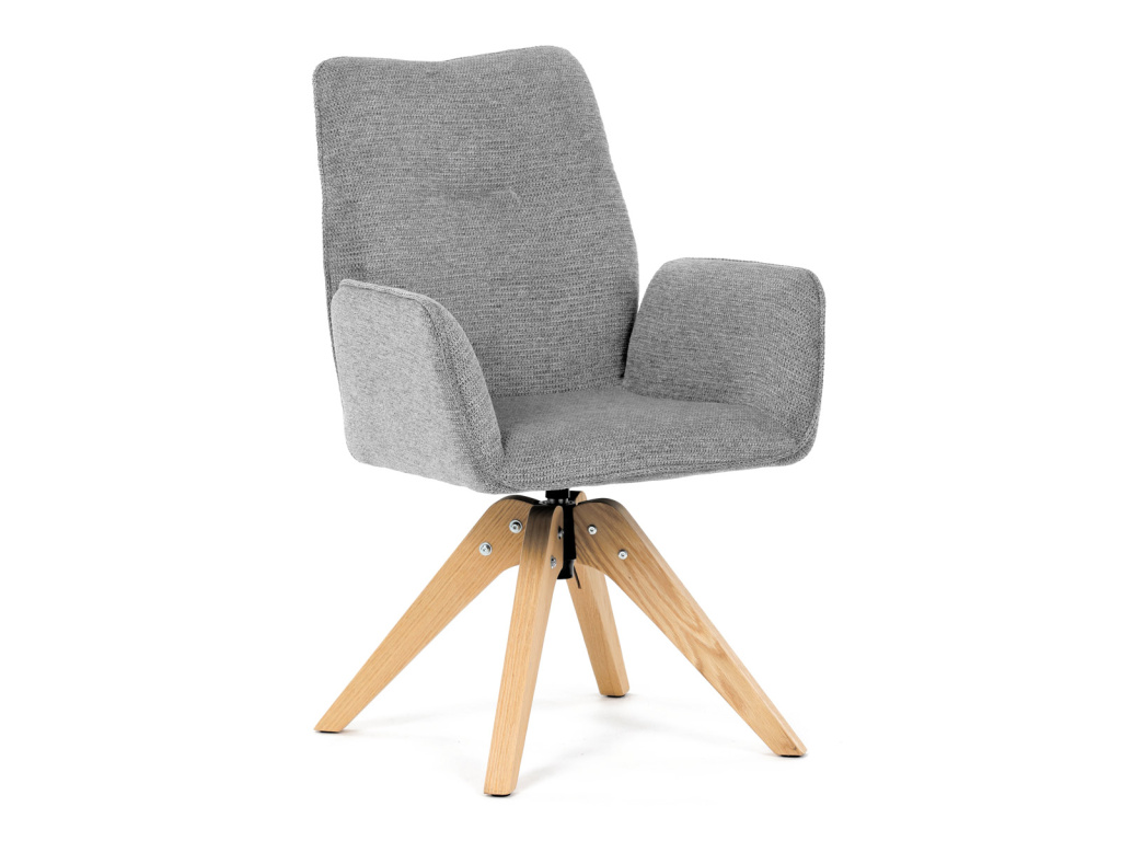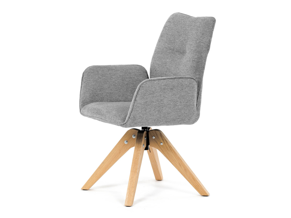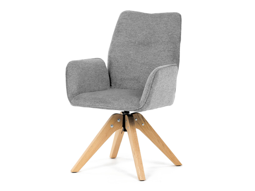 Jídelní židle s područkami, světle šedá voděodpudivá látka, dubové nohy, otočná 360° - DCH-C2148 SIL2