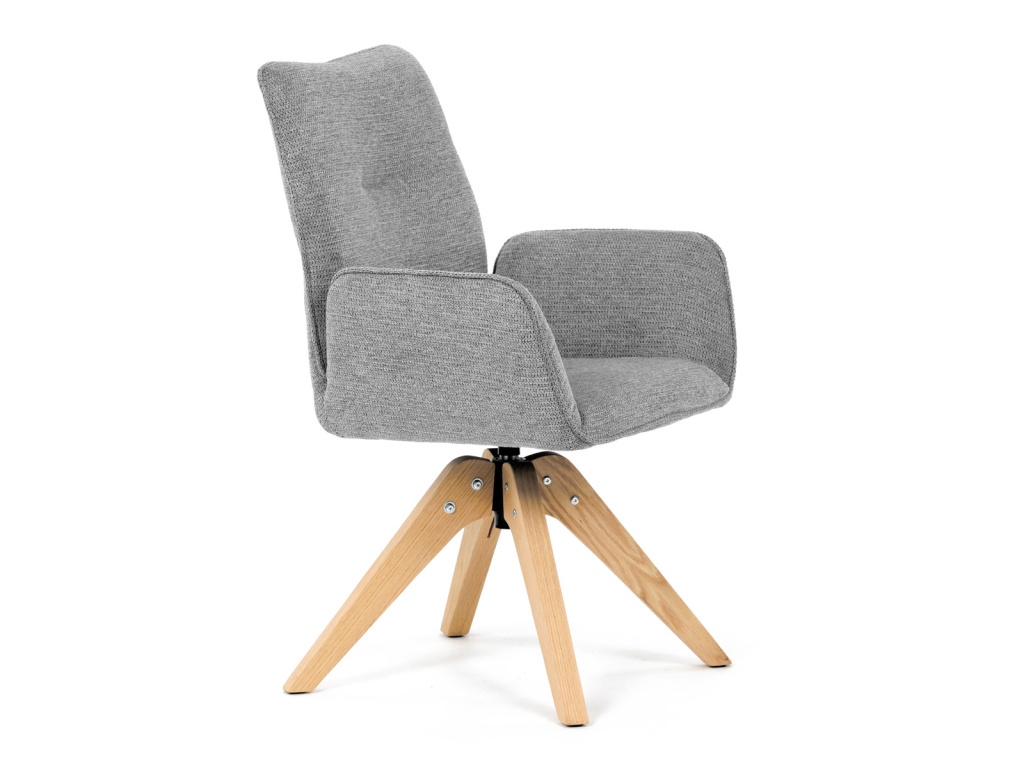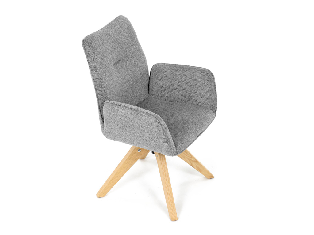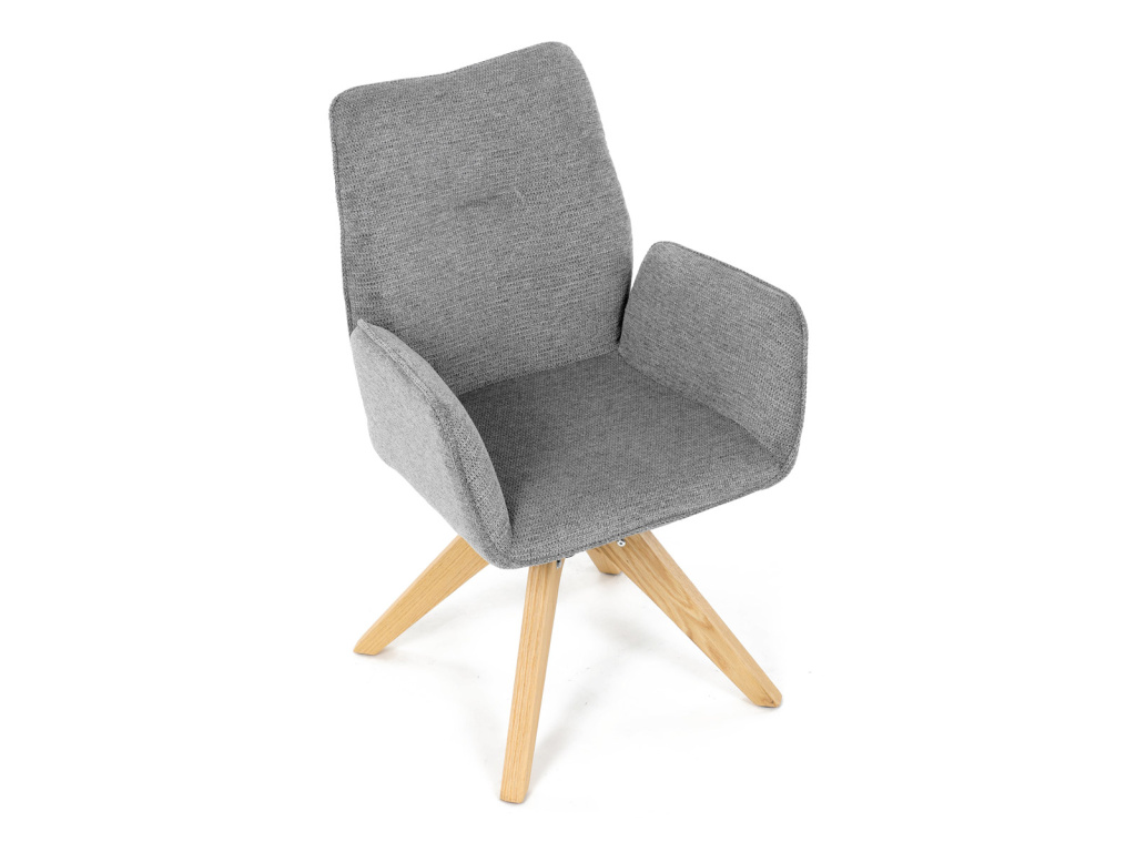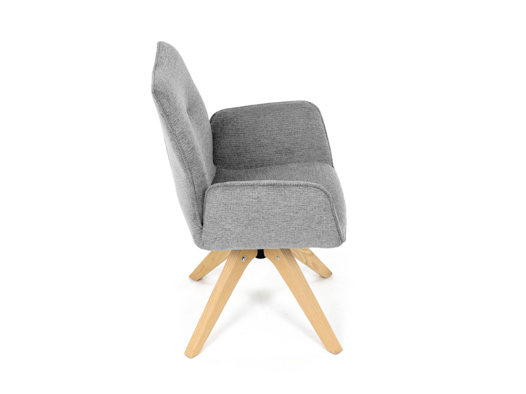 Jídelní židle s područkami, světle šedá voděodpudivá látka, dubové nohy, otočná 360° - DCH-C2148 SIL2