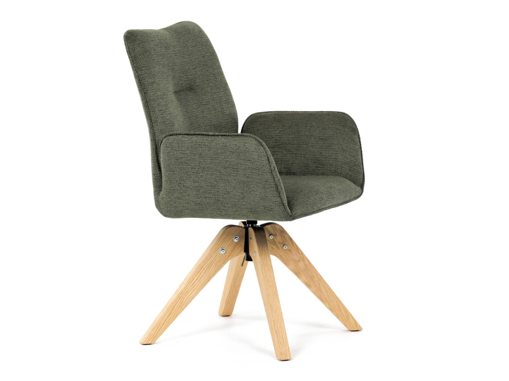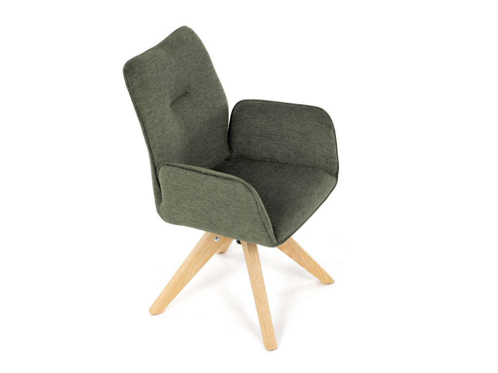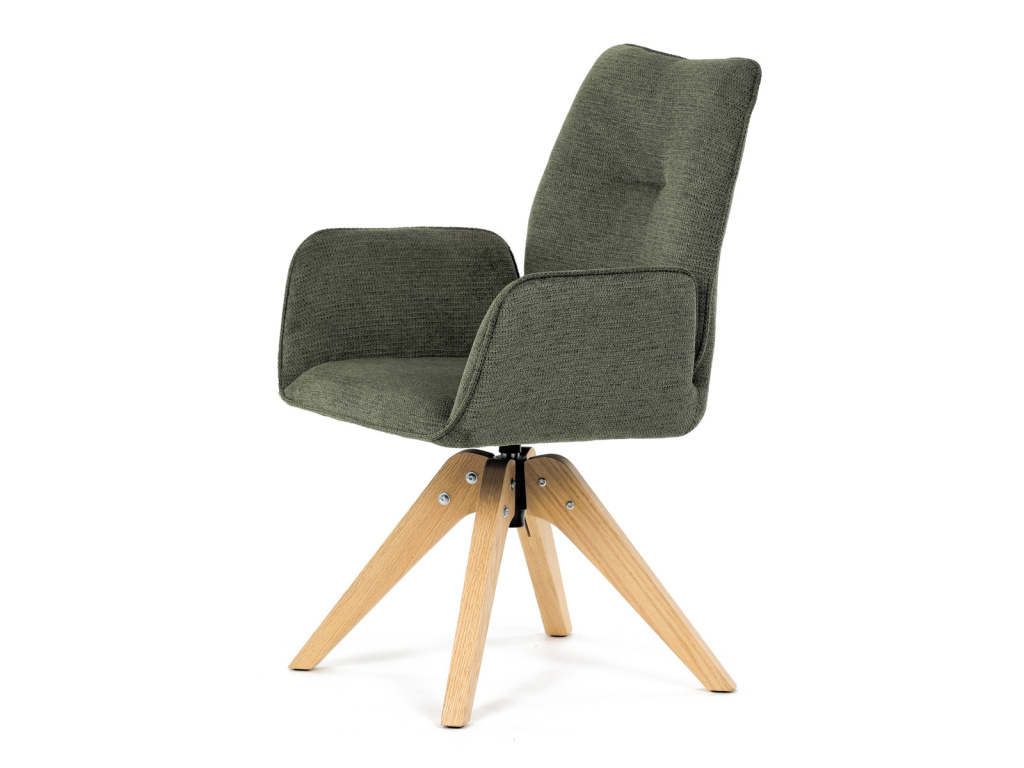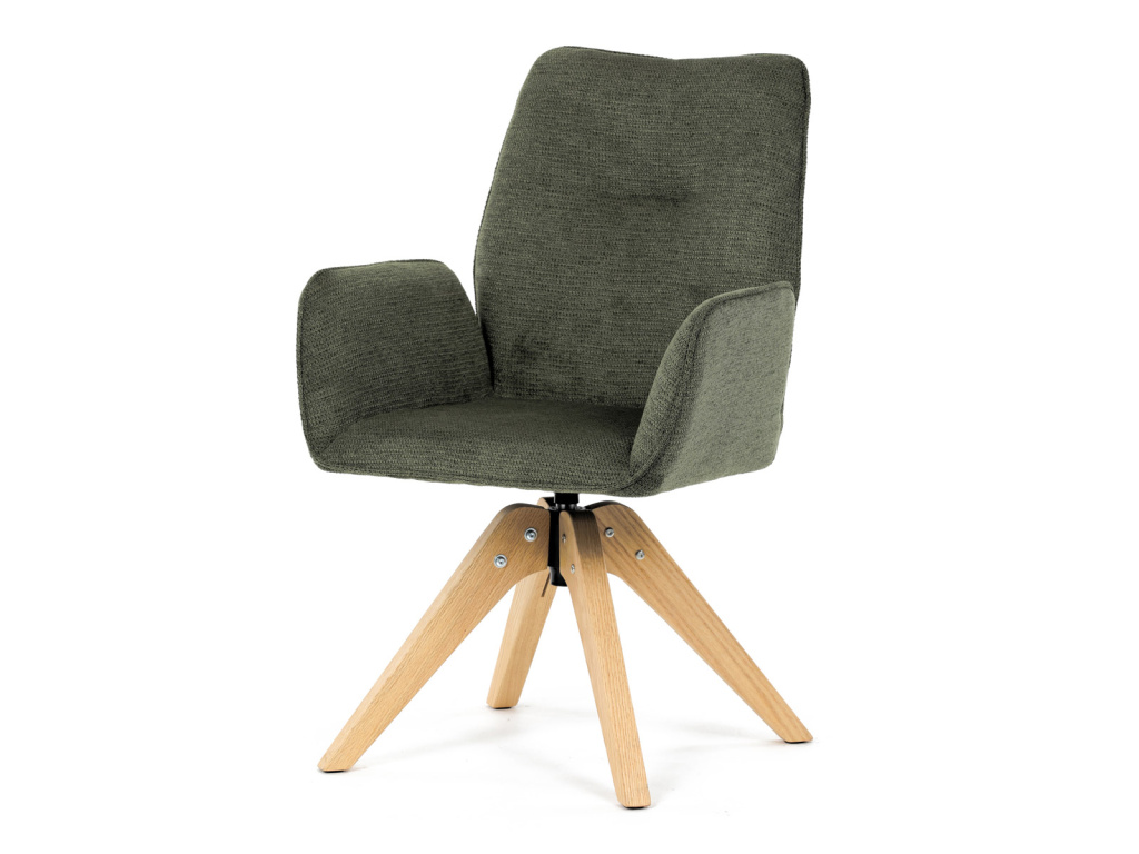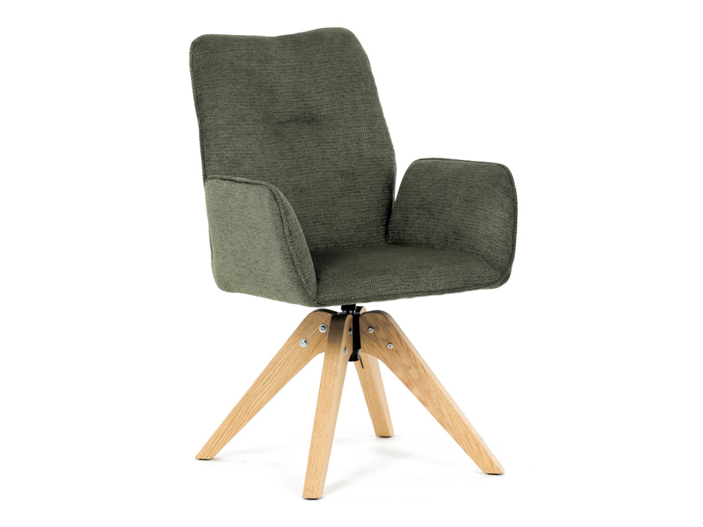 Jídelní židle s područkami, zelená voděodpudivá látka, dubové nohy, otočná 360° - DCH-C2148 GRN2