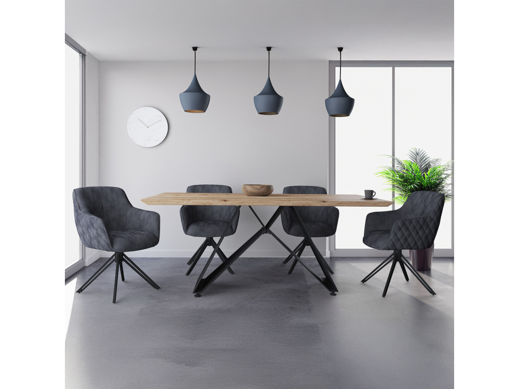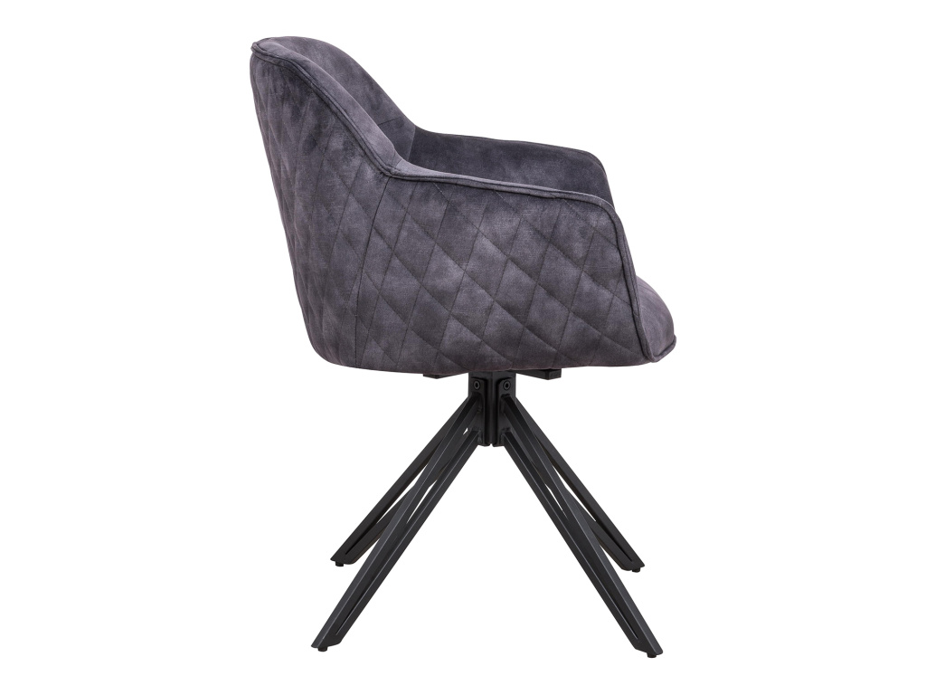 Elegantní jídelní židle SHERLOCK v moderním antracitovém provedení skvěle doplní každý interiér. Kvalitní textilní potah zajišťuje pohodlí při sezení, zatímco pevná kovová konstrukce v černé barvě dodává židli stabilitu a odolnost. Unikátní otočný mechanismus o 180 stupňů zvyšuje praktičnost a pohodlí při používání. Výška sedu 49 cm je ideální pro standardní jídelní stoly a doporučená nosnost do 120 kg zajišťuje spolehlivost. Jídelní židle SHERLOCK je dokonalou kombinací funkčnosti, stylu a komfortu – skvělá volba pro moderní domácnosti i komerční prostory.