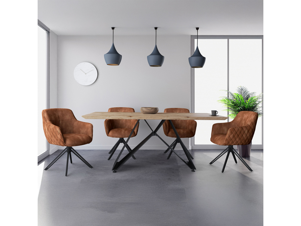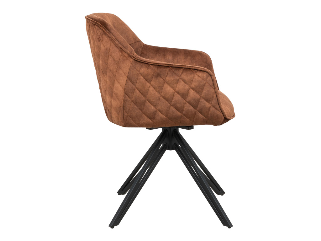 Elegantní jídelní židle SHERLOCK v moderním hnědém provedení skvěle doplní každý interiér. Kvalitní textilní potah zajišťuje pohodlí při sezení, zatímco pevná kovová konstrukce v černé barvě dodává židli stabilitu a odolnost. Unikátní otočný mechanismus o 180 stupňů zvyšuje praktičnost a pohodlí při používání. Výška sedu 49 cm je ideální pro standardní jídelní stoly a doporučená nosnost do 120 kg zajišťuje spolehlivost. Jídelní židle SHERLOCK je dokonalou kombinací funkčnosti, stylu a komfortu – skvělá volba pro moderní domácnosti i komerční prostory.