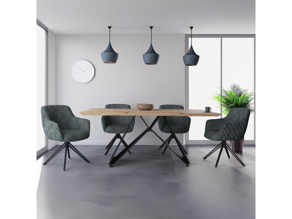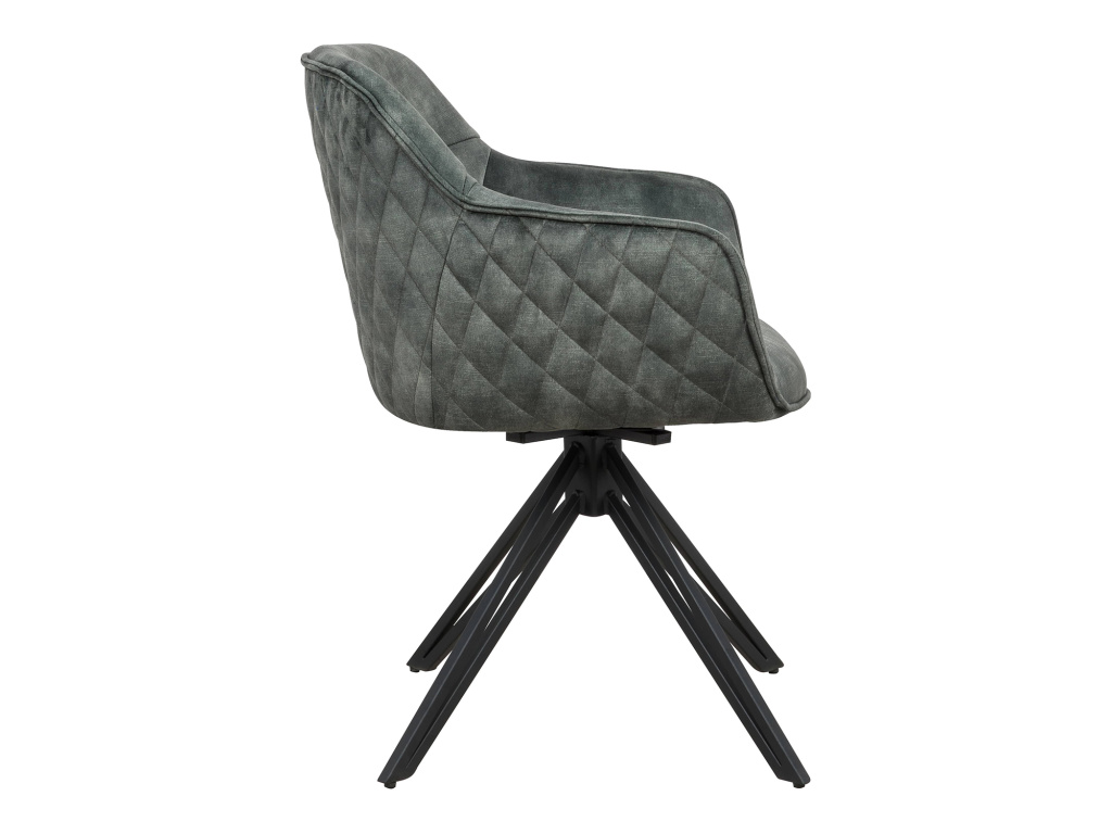 Elegantní jídelní židle SHERLOCK v moderním tmavě zeleném provedení skvěle doplní každý interiér. Kvalitní textilní potah zajišťuje pohodlí při sezení, zatímco pevná kovová konstrukce v černé barvě dodává židli stabilitu a odolnost. Unikátní otočný mechanismus o 180 stupňů zvyšuje praktičnost a pohodlí při používání. Výška sedu 49 cm je ideální pro standardní jídelní stoly a doporučená nosnost do 120 kg zajišťuje spolehlivost. Jídelní židle SHERLOCK je dokonalou kombinací funkčnosti, stylu a komfortu – skvělá volba pro moderní domácnosti i komerční prostory.