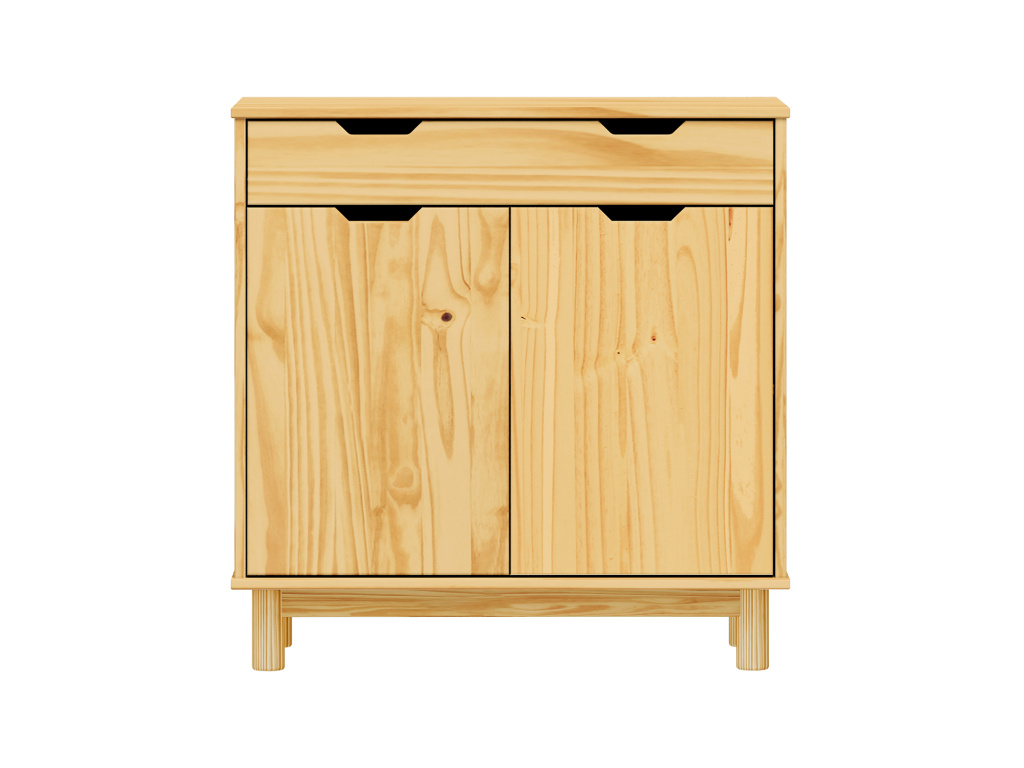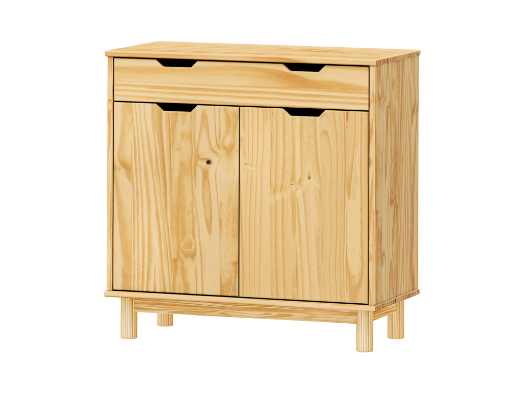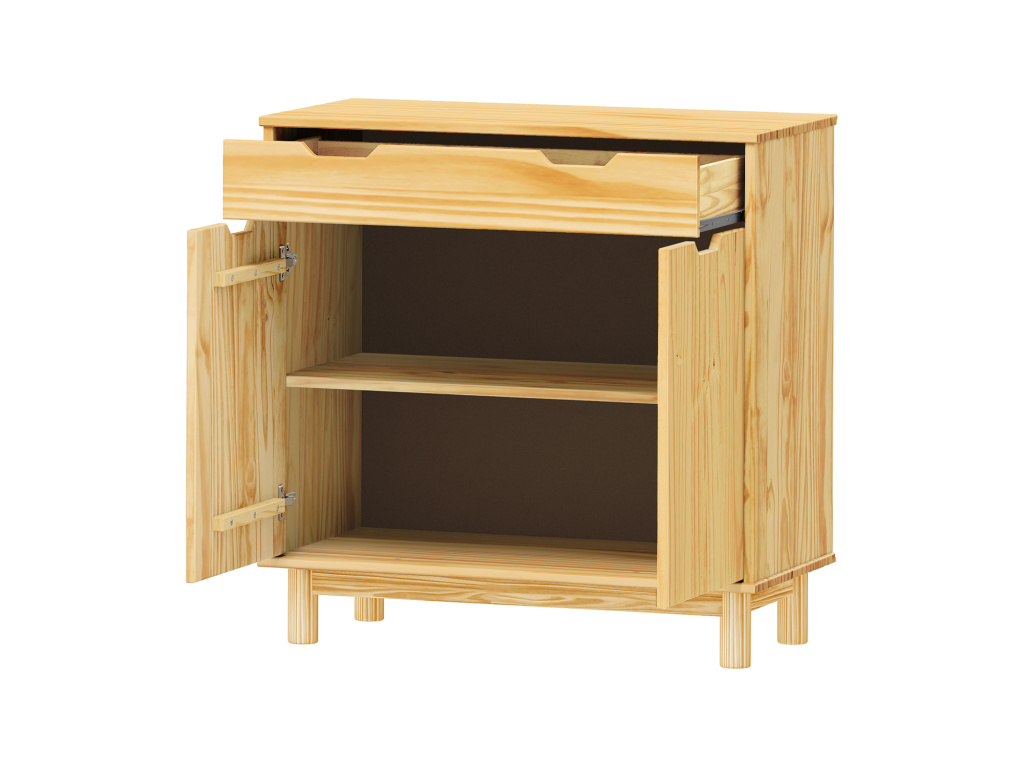 Komoda 2 dveře + 1 zásuvka BONITO 2 je elegantní a praktický kus nábytku z masivní borovice v kvalitním lakovaném provedení, které zvýrazňuje její přírodní kresbu a zároveň zajišťuje dlouhou životnost. Nabízí prostornou zásuvku s kovovými pojezdy pro plynulé otevírání, dvě dvířka pro snadné uložení větších předmětů a vnitřní polici pro přehlednou organizaci. Stylová, odolná a univerzální – ideální volba do ložnice, obývacího pokoje i předsíně.