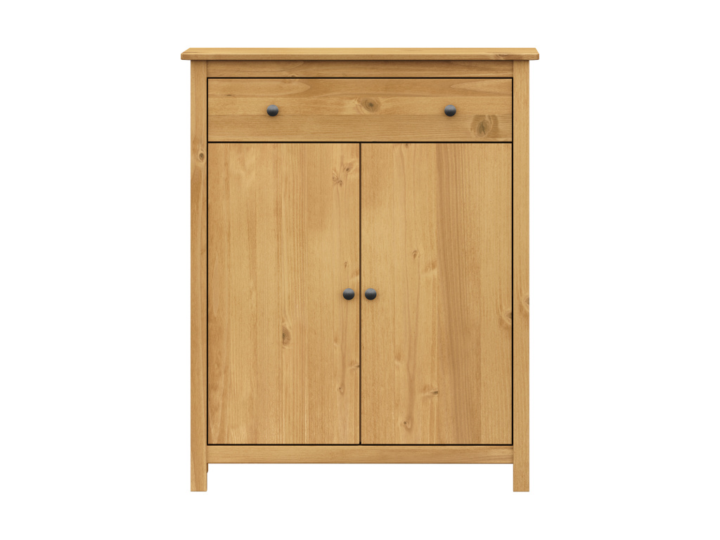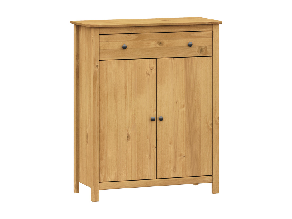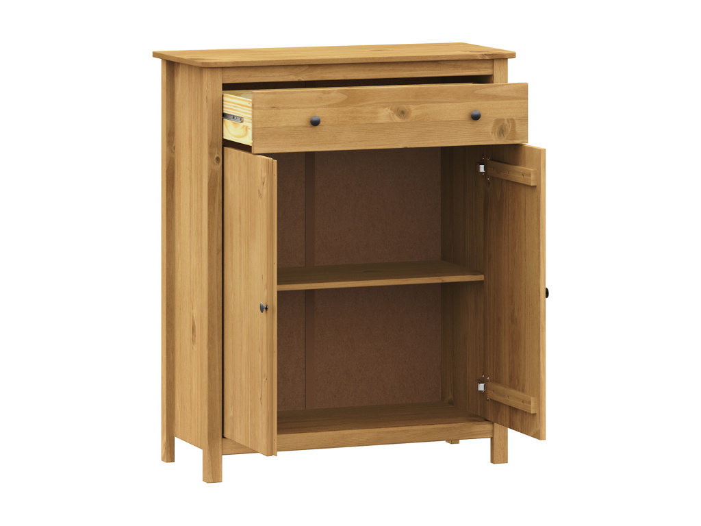 Komoda 2 dveře + zásuvka TORINO je vyrobena z masivní borovice a ošetřena voskem v elegantním medovém odstínu, který zvýrazňuje přírodní kresbu dřeva. Styl doplňují kovové úchytky v provedení černěná mosaz. Praktická komoda nabízí 1 prostornou zásuvku s kvalitními kovovými pojezdy, 2 plné dveře a 1 vnitřní polici pro přehledné uložení věcí. Maximální nosnosti jednotlivých částí jsou uvedeny v návodu k montáži.
