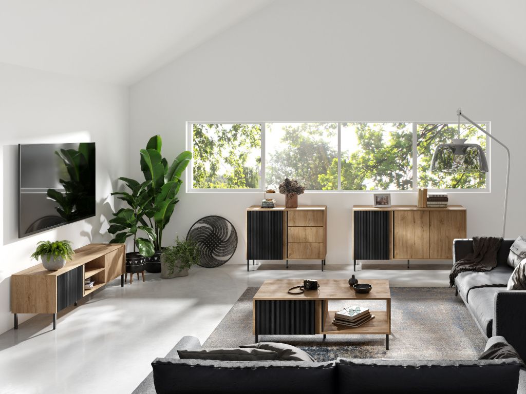 Komoda Mia 2 nabízí praktický úložný prostor pro přehledné uspořádání věcí v obývacím pokoji i dalších místnostech. Díky jednoduchému a funkčnímu provedení se hodí do různých typů interiérů. Kolekce Mia se vyznačuje moderním designem s čistými liniemi a nadčasovým vzhledem. Nábytek je dostupný v dekorech bílá nebo dub věčný / černá, které se snadno kombinují s různými styly interiéru. Jednotlivé elementy kolekce lze navíc mezi sebou libovolně kombinovat podle potřeb vašeho prostoru.