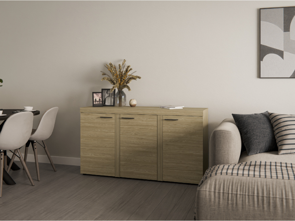 Hledáte univerzální řešení pro svůj interiér? Ceníte si nábytku, který můžete použít v jiné místnosti? Komoda Rumba v odstínu dub olejovaný bude pro vás ideální volbou! Její široká konstrukce poskytne dostatek úložného prostoru. Model má tři rovná čela, která skrývají prostorný vnitřek s policemi, což zajišťuje dostatek úložného prostoru, který je vždy potřeba. Pokud chcete vytvořit ucelený interiér, věnujte pozornost i dalším modelům z kolekce Rumba. Kvalitní materiály umožní dlouhodobou užitnost nábytku. Poskytněte sobě a svým blízkým funkční úložné řešení a využijte naší nabídky ještě dnes, taková příležitost se nemusí opakovat! Jste rozhodnutí? Vlastnosti systému zahrnují vysoce kvalitní provedení, moderní design, čela a korpus z laminátu, nové a originálně zabalené produkty, nábytek určený pro vlastní montáž, přičemž montážní díly a návod jsou součástí balení. Provedení systému zahrnuje čelo z 15 mm laminované desky, korpus z 15 mm laminované desky, MDF lištu 18 mm, melaminové hrany, zadní stěnu z HDF desky a plastové úchytky.