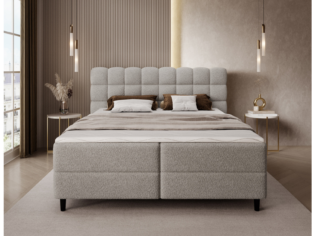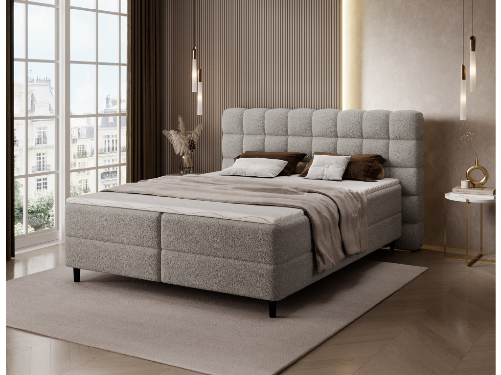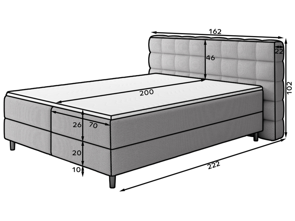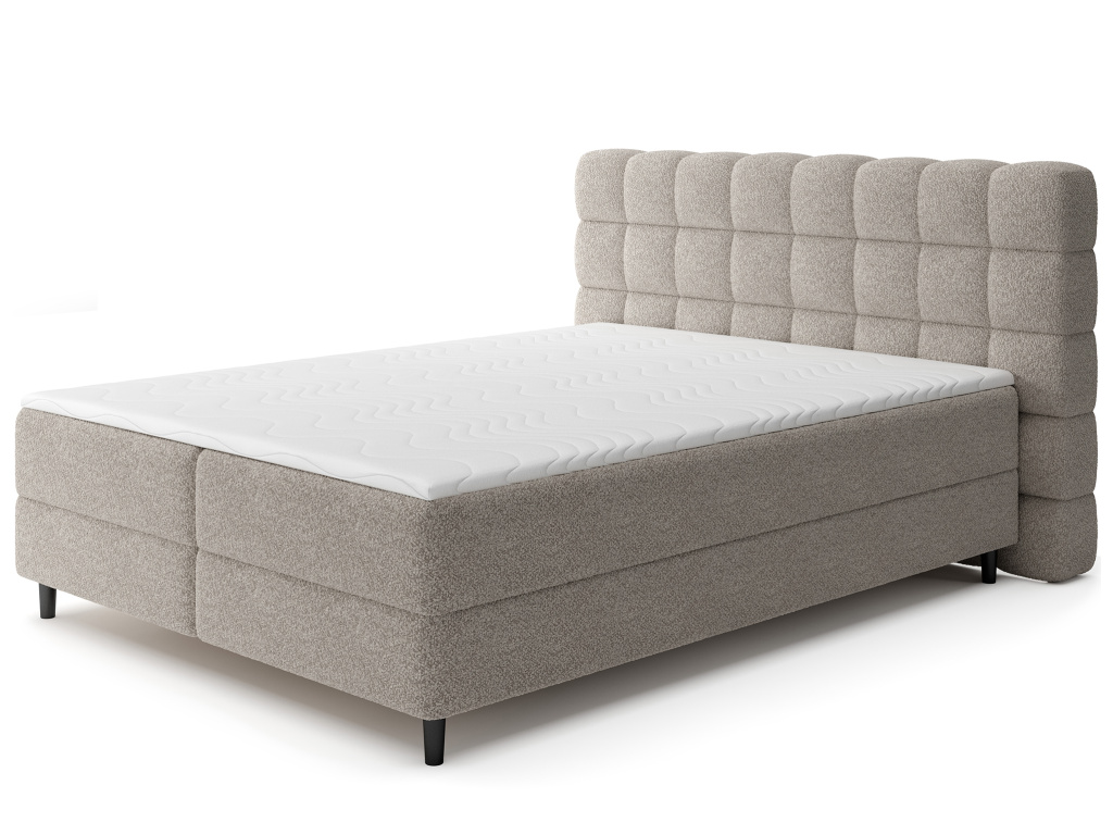 Kontinentální postel Camma v sobě spojuje moderní design, funkčnost a mimořádný komfort spaní, takže je ideální volbou pro elegantní a praktickou ložnici; je k dispozici ve třech rozměrech - 140x200 cm, 160x200 cm a 180x200 cm - a dokonale se přizpůsobí prostoru i individuálním potřebám, zatímco její pevná konstrukce s celkovou výškou 102 cm a výškou sedáku 56 cm zajišťuje každodenní pohodlí; hloubka postele je 222 cm a šířka závisí na zvoleném modelu - 162 cm, 182 cm nebo 202 cm - a dodává jí stabilní a působivý vzhled, který dodá luxusní nádech každému interiéru; čalouněná kvalitní látkou příjemnou na dotek se stylově prošívaným čelem kombinuje moderní eleganci s pohodlnou oporou pro čtení nebo relaxaci; praktický úložný box poskytuje prostor pro lůžkoviny a pomáhá udržovat v ložnici pořádek, takže postel Camma je nejen pohodlná, ale také vysoce funkční; design doplňují 10 cm černé dřevěné nožky, které dodávají optickou lehkost a usnadňují úklid pod postelí; model Camma je ideální volbou pro ty, kteří si cení moderního stylu, elegance, odolnosti a pohodlí a zajišťují zdravý a klidný spánek každou noc.