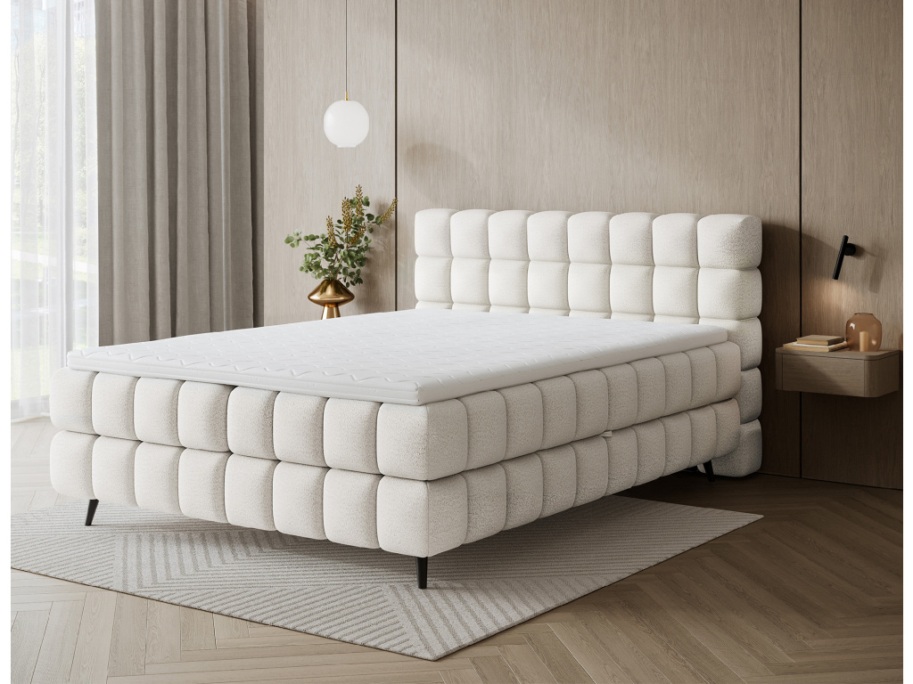 Kontinentální postel Sabeno je elegantní a funkční volbou do každé moderní ložnice. Model je k dispozici ve třech rozměrových variantách: 140x200 cm, 160x200 cm a 180x200 cm, což umožňuje přizpůsobit šířku postele vašim individuálním potřebám. Celková výška konstrukce je 111 cm a hloubka 222 cm, což dodává posteli stabilní a působivý vzhled. Komfort spánku zajišťuje kombinace pružin Bonell a pěny T2540, které poskytují správnou oporu a odolnost. Postel Sabeno je vybavena praktickým úložným prostorem na lůžkoviny, který pomáhá udržovat pořádek v ložnici. Celkový design doplňují černé dřevěné nábytkové nohy, které dodávají posteli jemnou eleganci a lehkost. Díky modernímu stylu se postel Sabeno skvěle hodí do minimalistických i výraznějších interiérových úprav. Díky své funkčnosti, kvalitním materiálům a estetickému provedení je kontinentální postel Sabeno ideální volbou pro ty, kteří si cení pohodlí, odolnosti a stylového nábytku do ložnice.
