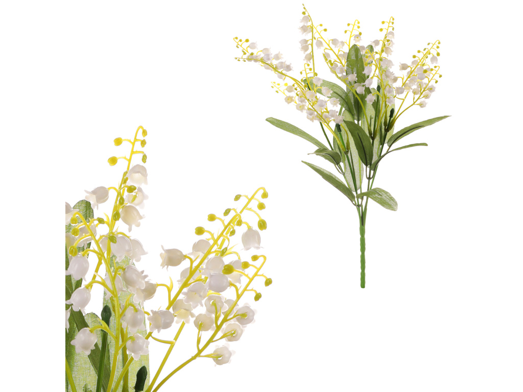 Představte si, že můžete zachytit kouzlo jara na věčnost. Tato umělá kytice konvalinek je jako malý zázrak, který vám přináší všechnu radost a krásu jara bez ohledu na roční období. Toto jarní kvítí je pečlivě vytvořeno tak, aby napodobovalo každý detail skutečné rostliny a vypadalo, jako by právě rozpuklo. Nikdy neuvadne a neztratí na svém půvabu. Můžete si tak užívat té nádhery, jak jen budete chtít. Nechte ji vyniknout samostatně, nebo začleňte do smyslného mixu s dalšími rostlinami a vytvořte ohromující kompozici, která okouzlí každého. Osvěžte svůj interiér, přidejte mu nádech jara, explozi barev a touhu po životě s touto umělou květinovou ozdobou.Doplňkové parametry