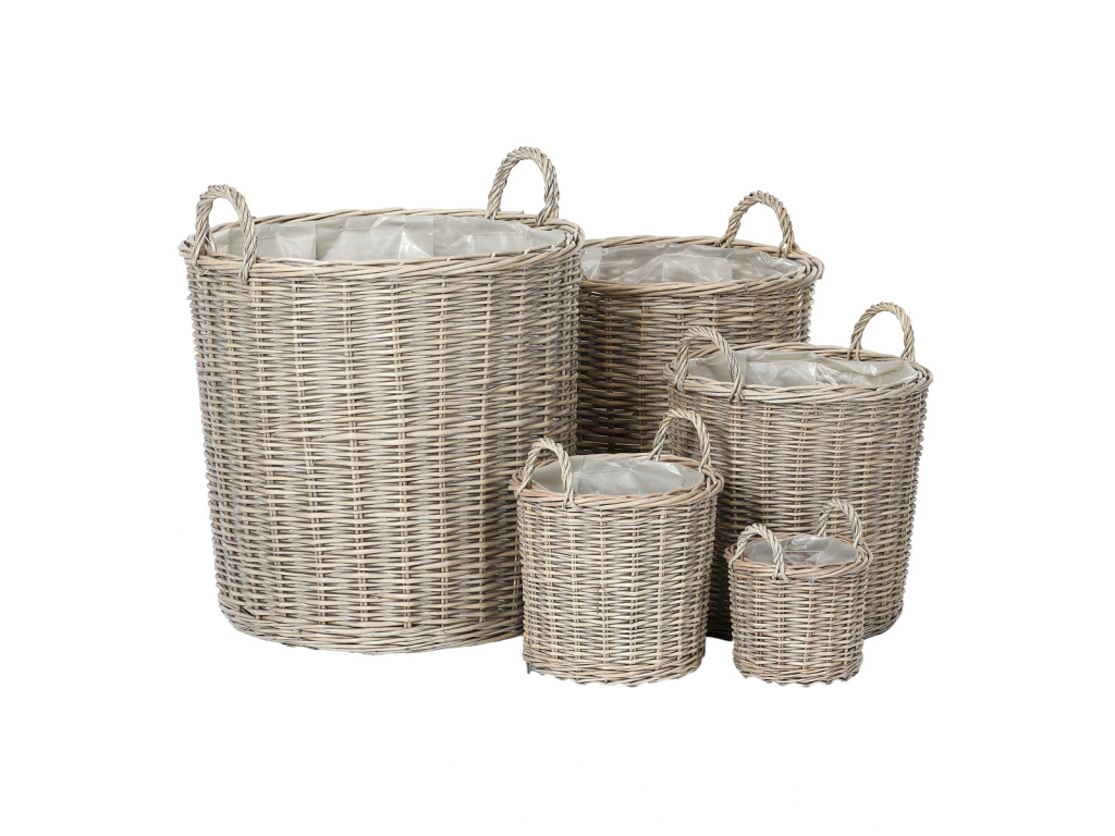 Proutěný koš s kruhovým půdorysem v přírodní našedivělé barvě představuje skvělou variantu obalu pro vaše květiny. Nabízíme vám je v sadě pěti různých velikostí, tak abyste mohli vybrat tu správnou míru pro vaší vybranou rostlinu. Materiál z proutí dodává do interiéru příjemný a rustikální vzhled, který navodí útulnější a atmosféru. Tento koš je především estetickým doplňkem, protože je celý pouze a jen z proutí. Proto je důležité, aby květiny v koši byly umístěny již ve svém obalu a nehrozilo prosakování vody.Doplňkové parametry