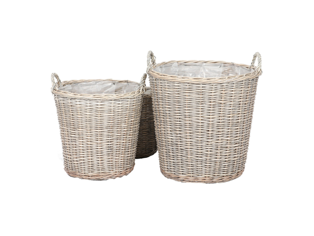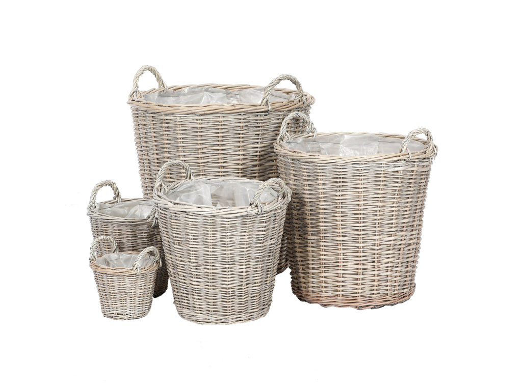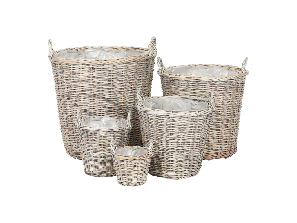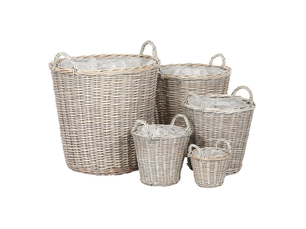 Proutěný koš s kruhovým půdorysem v přírodní našedivělé barvě představuje skvělou variantu obalu pro vaše květiny. Nabízíme vám je v sadě pěti různých velikostí, tak abyste mohli vybrat tu správnou míru pro vaší vybranou rostlinu. Materiál z proutí dodává do interiéru příjemný a rustikální vzhled, který navodí útulnější a atmosféru. Tento koš se dvěma uchy po stranách pro snadnější přemisťování, je navíc vybaven igelitovou vložkou, která zabraňuje prosakování vody, a tím chrání obal samotný včetně jeho bezprostředního okolí.Doplňkové parametry