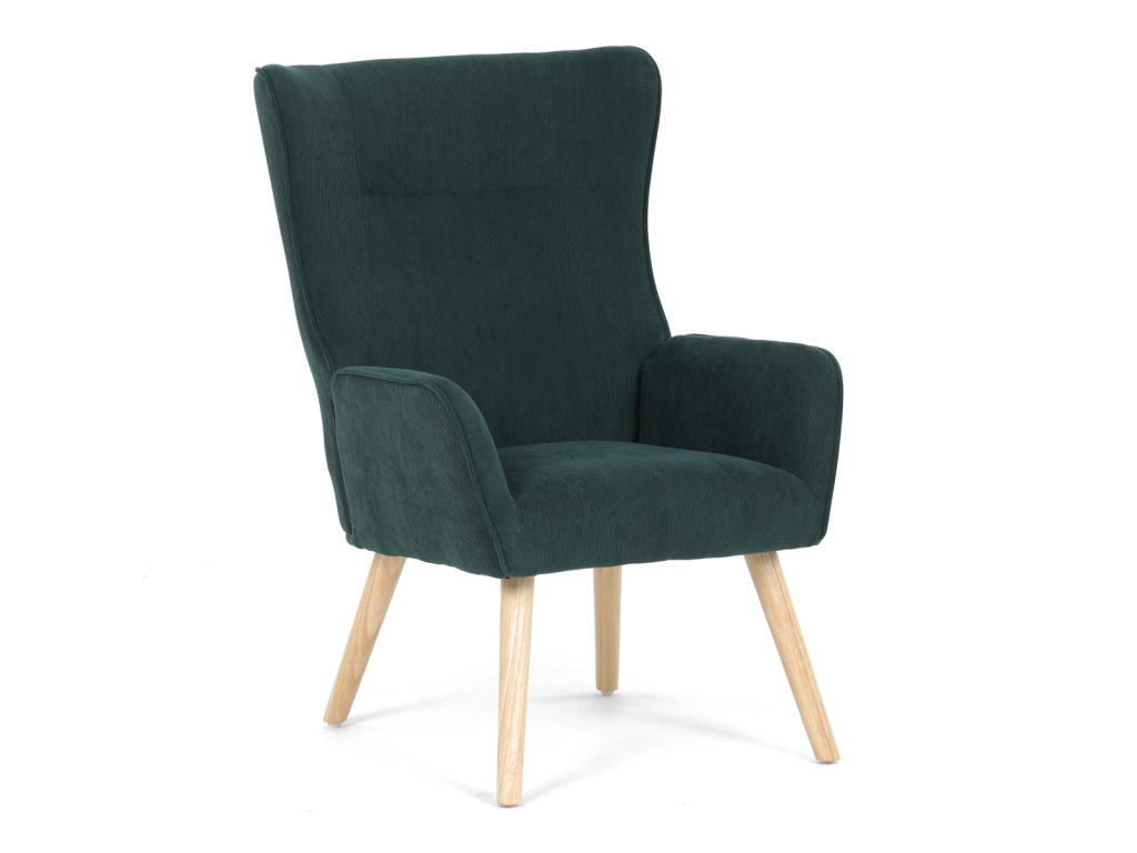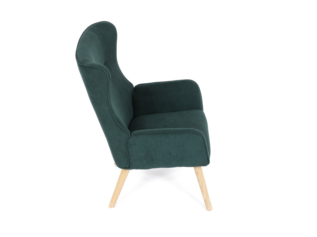 Křeslo, potah zelená manšestrová látka, dřevěné nohy, masiv kaučukovník - AK-314 GRN2