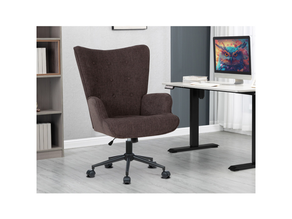 Stylové křeslo „ušák“ v tmavě hnědé látce je synonymem pohodlí a nadčasové elegance. Jeho ikonický tvar s vysokým opěradlem a charakteristickými „uši“ nabízí dokonalou oporu pro hlavu, krk i záda, takže si můžete vychutnat maximální relax při čtení, odpočinku či sledování televize. Kovový křížový podstavec dodává křeslu moderní a lehký vzhled, zároveň zajišťuje výbornou stabilitu a dlouhou životnost. Tmavě hnědý potah působí luxusně, snadno se kombinuje s jinými barvami a přináší do interiéru teplo i útulnost. Křeslo „ušák“ je ideálním spojením klasického designu a moderní funkčnosti – perfektní volba pro každého, kdo si potrpí na stylový vzhled a maximální komfort.