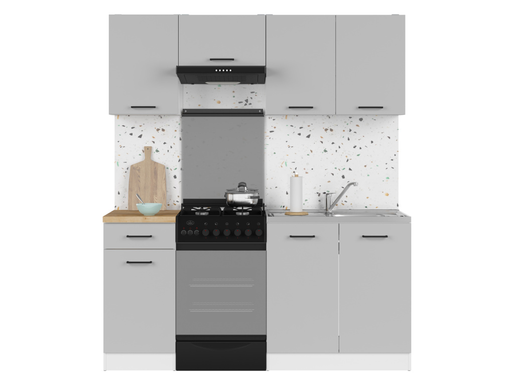 Tato sestava propojuje barvy bílého a světle šedého lesku. Vnáší tak do kuchyně svěžest a moderní vzhled. Vyrobeno z lamina 16mm. Které se snadno udržuje.Nezapomeňte, že pracovní deska není součástí balení. Vybrat si můžete například na našem eshopu.