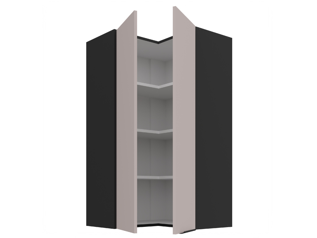 Horní vysoká rohová kuchyňská skřínka Arona s dvěma dvířky je perfektním spojením elegance a funkčnosti pro vaši kuchyň. Vyrobena z kvalitního lamina o tloušťce 16 mm, skřínka nabízí dlouhou životnost a odolnost. Elegantní provedení s černým matným korpusem a dvířky v odstínu Kašmír přináší do vaší kuchyně moderní a sofistikovaný vzhled, který zaujme na první pohled. Černý úchyt dokonale doplňuje celkový design a přidává vkusný detail. Díky rohovému provedení skřínka efektivně využívá prostor a poskytuje praktický úložný prostor pro vaše kuchyňské potřeby. Možnost dokoupení dalších skříněk z kolekce Arona vám umožňuje vytvořit si kuchyň přesně podle vašich představ a potřeb. Objevte, jak horní rohová kuchyňská skřínka Arona může vylepšit vaši kuchyň o moderní design a praktičnost.