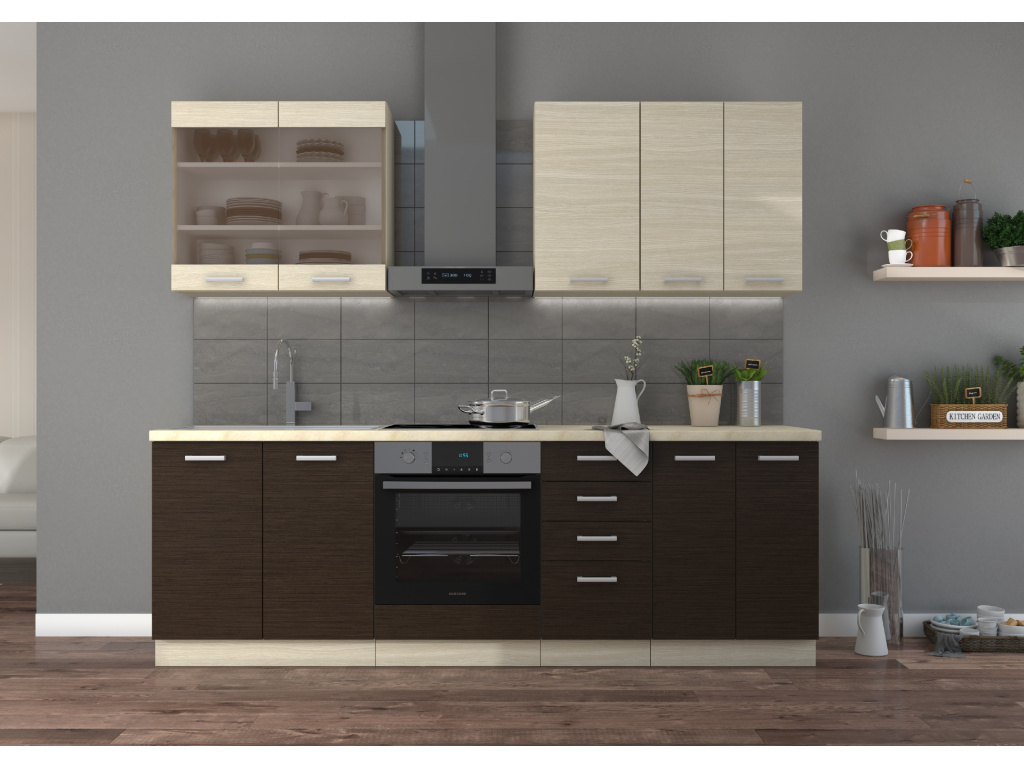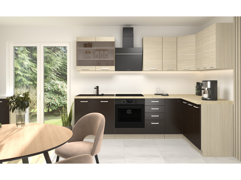 Dolní kuchyňská skřínka CHAMONIX je perfektním řešením pro instalaci trouby ve vaší kuchyni. Tato skřínka se vyznačuje korpusem v elegantním odstínu Dub Ferrara, který dodává prostoru přírodní a teplý vzhled, zatímco dvířka v tmavém dekoru Legno poskytují stylový kontrast. Vyrobena z kvalitního lamina o tloušťce 16 mm, skřínka zajišťuje dlouhou životnost a odolnost vůči každodennímu opotřebení. Pro vytvoření harmonického a jednotného vzhledu vaší kuchyně je možné doobjednat další skřínky z kolekce Chamonix. Tento produkt je ideální volbou pro ty, kteří chtějí spojit funkčnost s moderním designem.Doplňkové parametry