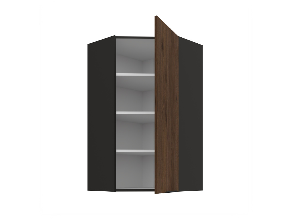 Představujeme vysokou rohovou horní kuchyňskou skřínku Monza, která je ideálním řešením pro každou moderní kuchyň. Tento sofistikovaný kus nábytku s jedním dvířkem je vyroben z kvalitního lamina o tloušťce 16 mm, což zajišťuje dlouhou životnost a odolnost. Dvířka v elegantním odstínu ořechu okapi krásně kontrastují s černým matným korpusem, čímž přinášejí do vašeho interiéru moderní a stylový vzhled. Rohová konstrukce linky umožňuje efektivní využití prostoru a poskytuje praktický úložný prostor pro vaše kuchyňské potřeby. Pro ještě větší flexibilitu a přizpůsobení vaší kuchyně můžete doobjednat další skříňky z kolekce Monza. Zvolte rohovou kuchyňskou skřínku Monza a dopřejte si kombinaci elegance a praktičnosti každý den!