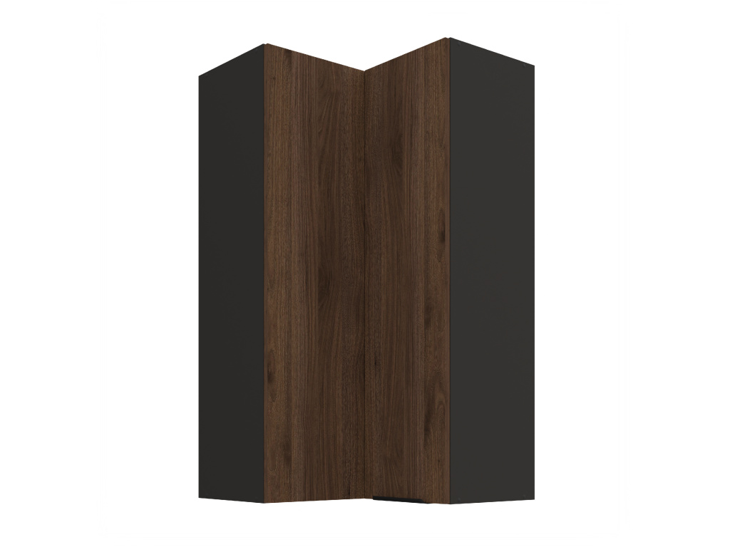 Objevte vysokou rohovou horní kuchyňskou skřínku Monza, která přináší dokonalou kombinaci stylu a funkčnosti pro váš domov. Tento elegantní kus nábytku se dvěma dvířky je vyroben z odolného lamina o tloušťce 16 mm, což zaručuje dlouhou životnost a spolehlivost. Dvířka v odstínu ořechu okapi vytvářejí působivý kontrast s černým matným korpusem, čímž dodávají vaší kuchyni moderní a sofistikovaný vzhled. Rohová konstrukce této linky efektivně využívá dostupný prostor, což umožňuje praktické uložení vašich kuchyňských potřeb. Pro maximální přizpůsobení a flexibilitu vaší kuchyně můžete doobjednat další skříňky z kolekce Monza. Vyberte si rohovou kuchyňskou skřínku Monza a zažijte denně kombinaci elegance a praktičnosti!