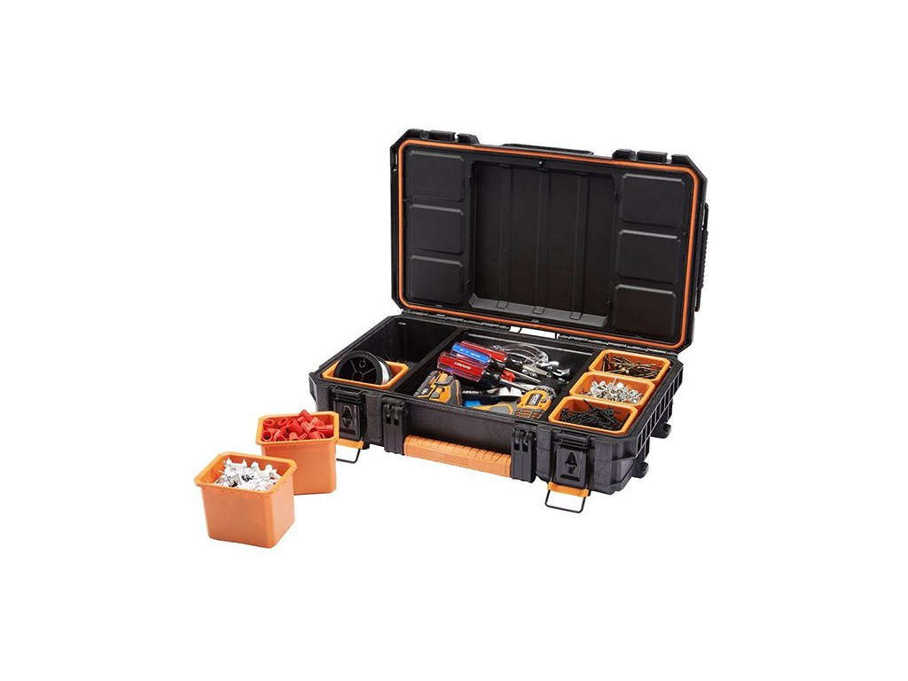 kufr na nářadí s množstvím přihrádek, k přehlednému uložení nářadí a materiálu, množství zabudovaných přihrádek pro řemeslníky i domácí kutilyDoplňkové parametry