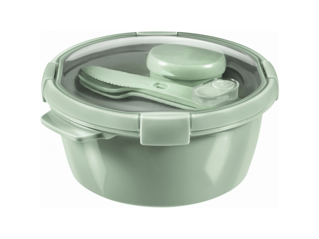 Kulatá dóza SMART TO GO ECO 1,6l s příborem, mističkou a táckem zelená