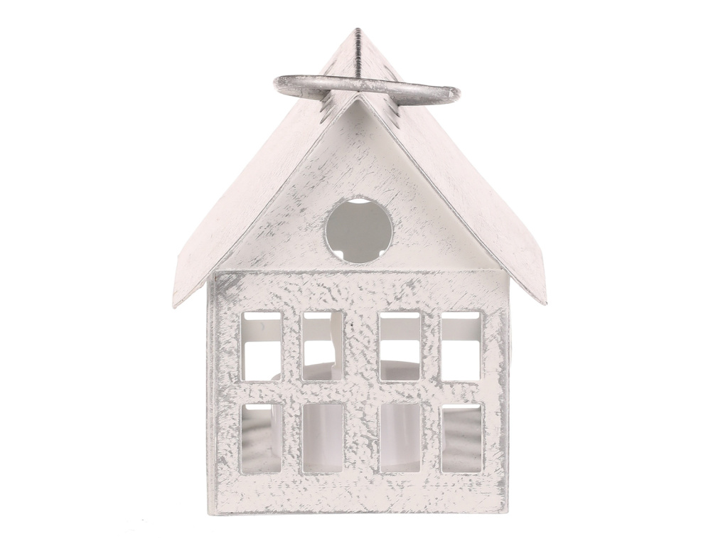 Lucerna mini - kovová, tvar domku, bílá - LUC322